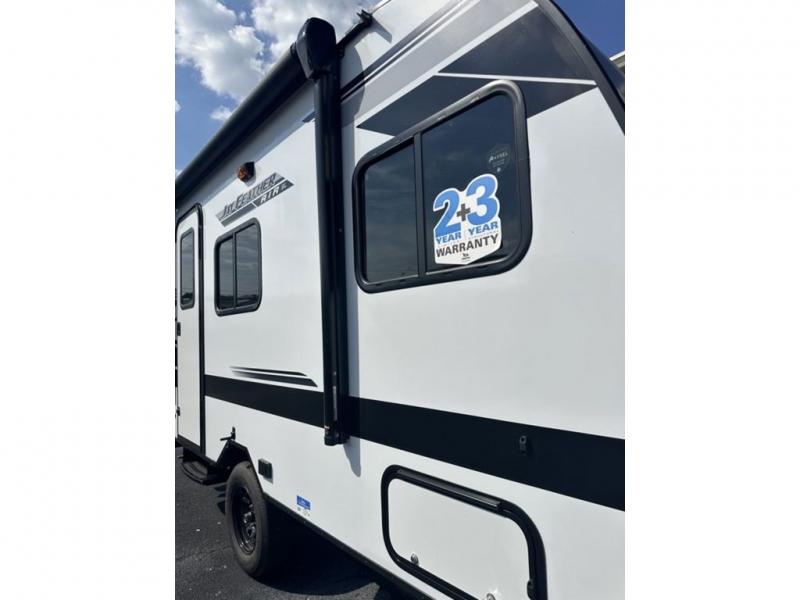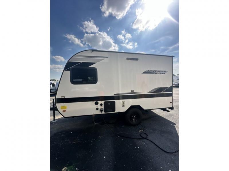 The Jay Feather Air SL travel trailer by Jayco is affordable, convenient, and lightweight for an easier tow! A Magnum Truss roof system and fully integrated A-frame provide a strong foundation to the trailer, plus there are galvanized-steel, impact resistant wheel wells for added protection. Some of the exterior conveniences you'll find include a front tongue jack and stabilizer jacks, roof mount solar prep, an exterior porch light, and G20 dark tinted privacy windows. Head inside to enjoy solid hardwood cabinet doors, residential-style kitchen countertops, a marine-grade toilet with foot flush, and vinyl flooring throughout that will be easy to keep clean. This super lite travel trailer is the perfect choice for rookie RVers and seasoned campers alike!