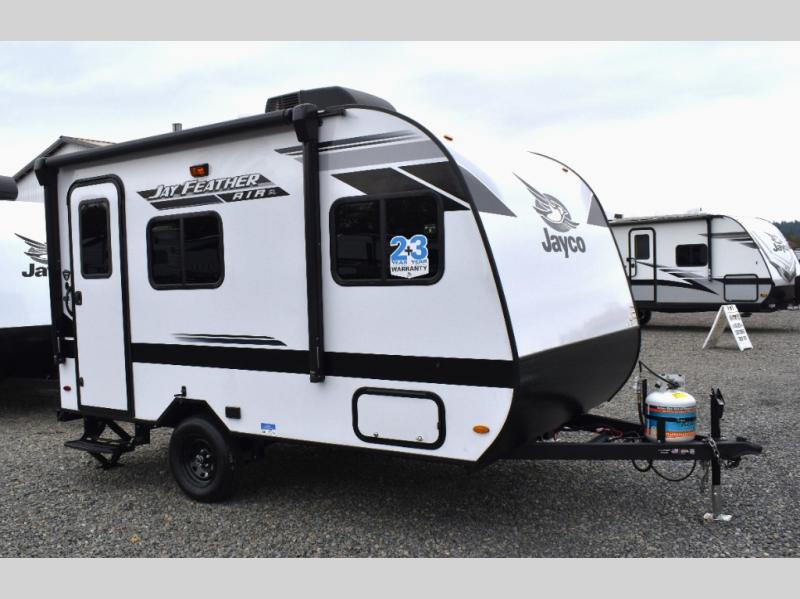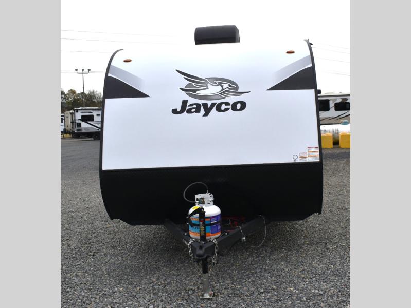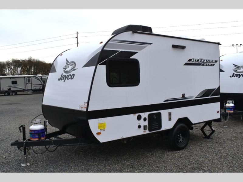 The Jay Feather Air SL travel trailer by Jayco is affordable, convenient, and lightweight for an easier tow! A Magnum Truss roof system and fully integrated A-frame provide a strong foundation to the trailer, plus there are galvanized-steel, impact resistant wheel wells for added protection. Some of the exterior conveniences you'll find include a front tongue jack and stabilizer jacks, roof mount solar prep, an exterior porch light, and G20 dark tinted privacy windows. Head inside to enjoy solid hardwood cabinet doors, residential-style kitchen countertops, a marine-grade toilet with foot flush, and vinyl flooring throughout that will be easy to keep clean. This super lite travel trailer is the perfect choice for rookie RVers and seasoned campers alike!