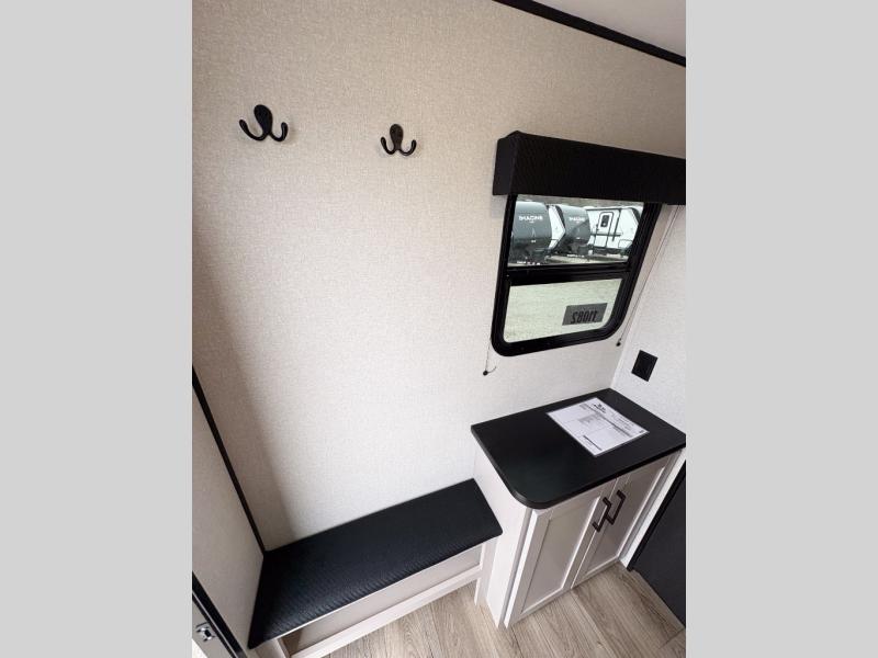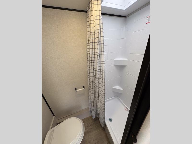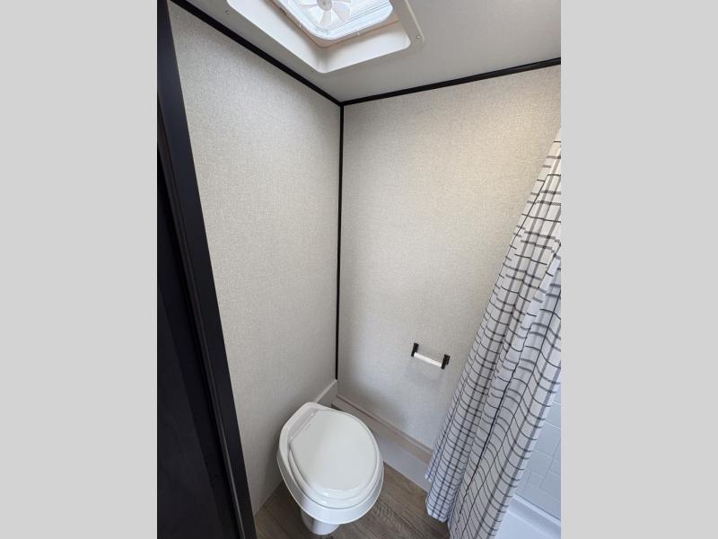 You'll love camping in this lightweight and versatile travel trailer! Once you've arrived at the campground and have unpacked your things, you can make a quick lunch on the two-burner cooktop. There are two 32" x 74" twin-size bed/benches that include a table for a king-size bed conversion, and you'll find a large overhead cabinet here to keep books or board games stored away. A private bath includes a shower and a toilet to easily clean up each day, and a dresser just outside the bath will let you keep clothes or towels organized. Don't let this cozy travel trailer slip away!