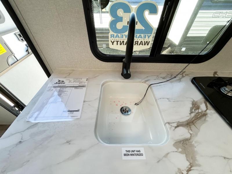 The Jay Feather Air SL travel trailer by Jayco is affordable, convenient, and lightweight for an easier tow! A Magnum Truss roof system and fully integrated A-frame provide a strong foundation to the trailer, plus there are galvanized-steel, impact resistant wheel wells for added protection. Some of the exterior conveniences you'll find include a front tongue jack and stabilizer jacks, roof mount solar prep, an exterior porch light, and G20 dark tinted privacy windows. Head inside to enjoy solid hardwood cabinet doors, residential-style kitchen countertops, a marine-grade toilet with foot flush, and vinyl flooring throughout that will be easy to keep clean. This super lite travel trailer is the perfect choice for rookie RVers and seasoned campers alike!
