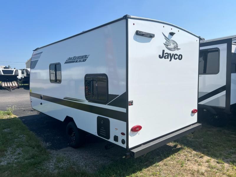 The Jay Feather Air SL travel trailer by Jayco is affordable, convenient, and lightweight for an easier tow! A Magnum Truss roof system and fully integrated A-frame provide a strong foundation to the trailer, plus there are galvanized-steel, impact resistant wheel wells for added protection. Some of the exterior conveniences you'll find include a front tongue jack and stabilizer jacks, roof mount solar prep, an exterior porch light, and G20 dark tinted privacy windows. Head inside to enjoy solid hardwood cabinet doors, residential-style kitchen countertops, a marine-grade toilet with foot flush, and vinyl flooring throughout that will be easy to keep clean. This super lite travel trailer is the perfect choice for rookie RVers and seasoned campers alike!