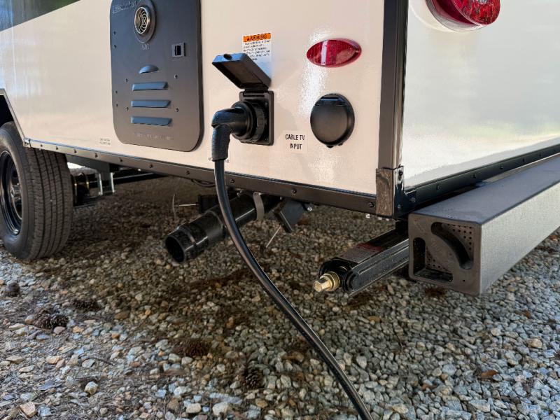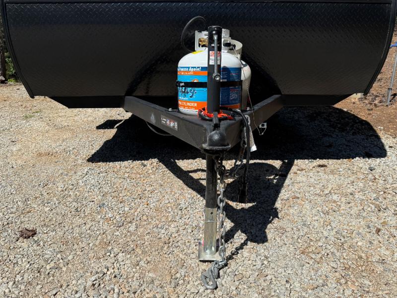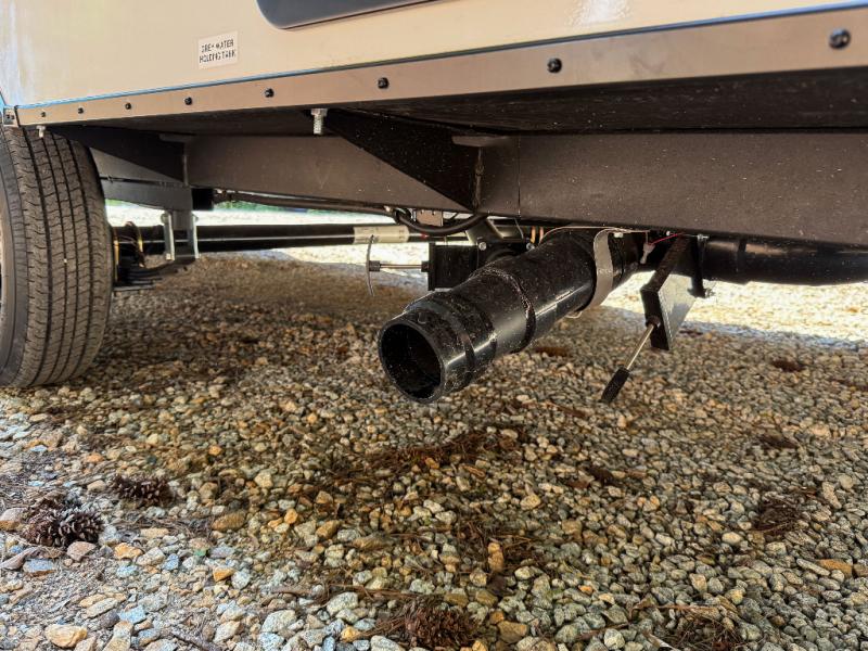 This compact travel trailer has everything you need for convenient camping trips! Once you arrive at the park, you can unload the exterior storage and put out the 10' power awning. The two burner cooktop and microwave oven will let you make lunch for your crew, and there is a 5 cu. ft. 12V refrigerator to keep your cold items fresh. A booth dinette will provide dining space when you don't want to eat outdoors, and this can convert to sleeping space for one guest or two little ones. You'll appreciate the private bath with a toilet and 36" tub/shower to freshen up in each day, and the bunk beds in the back provide compact sleeping space for more campers. The front queen bed will be reserved just for you, and there is a nightstand, wardrobe, and overhead cabinet here to keep your things tidy!