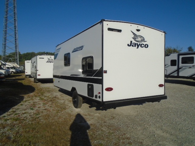 The Jay Feather Air SL travel trailer by Jayco is affordable, convenient, and lightweight for an easier tow! A Magnum Truss roof system and fully integrated A-frame provide a strong foundation to the trailer, plus there are galvanized-steel, impact resistant wheel wells for added protection. Some of the exterior conveniences you'll find include a front tongue jack and stabilizer jacks, roof mount solar prep, an exterior porch light, and G20 dark tinted privacy windows. Head inside to enjoy solid hardwood cabinet doors, residential-style kitchen countertops, a marine-grade toilet with foot flush, and vinyl flooring throughout that will be easy to keep clean. This super lite travel trailer is the perfect choice for rookie RVers and seasoned campers alike!