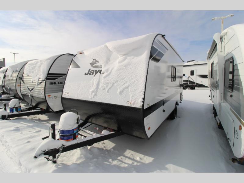 The Jay Feather Air SL travel trailer by Jayco is affordable, convenient, and lightweight for an easier tow! A Magnum Truss roof system and fully integrated A-frame provide a strong foundation to the trailer, plus there are galvanized-steel, impact resistant wheel wells for added protection. Some of the exterior conveniences you'll find include a front tongue jack and stabilizer jacks, roof mount solar prep, an exterior porch light, and G20 dark tinted privacy windows. Head inside to enjoy solid hardwood cabinet doors, residential-style kitchen countertops, a marine-grade toilet with foot flush, and vinyl flooring throughout that will be easy to keep clean. This super lite travel trailer is the perfect choice for rookie RVers and seasoned campers alike!