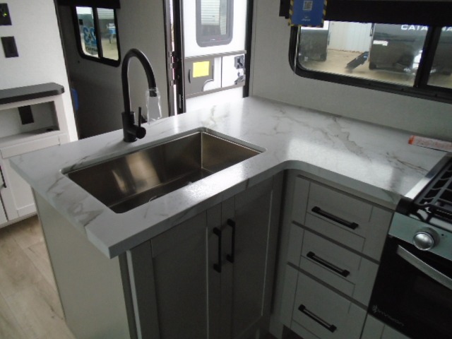 Camp light and camp convenient in a Jay Feather SL by Jayco! This lightweight travel trailer is constructed with a Magnum Truss roof system, a fully integrated A-frame, and exterior Azdel composite panels for added durability. There are also nitrogen-filled radial tires outside, along with large downspouts, MORryde Step Above entry steps, a power awning with LED lights, and a power tongue jack to name a few conveniences. Head inside to enjoy the vinyl flooring throughout, solid hardwood cabinet doors, a shower surround, and residential-style kitchen countertops to make your space feel a little more like home!