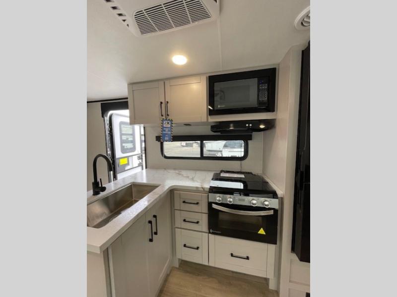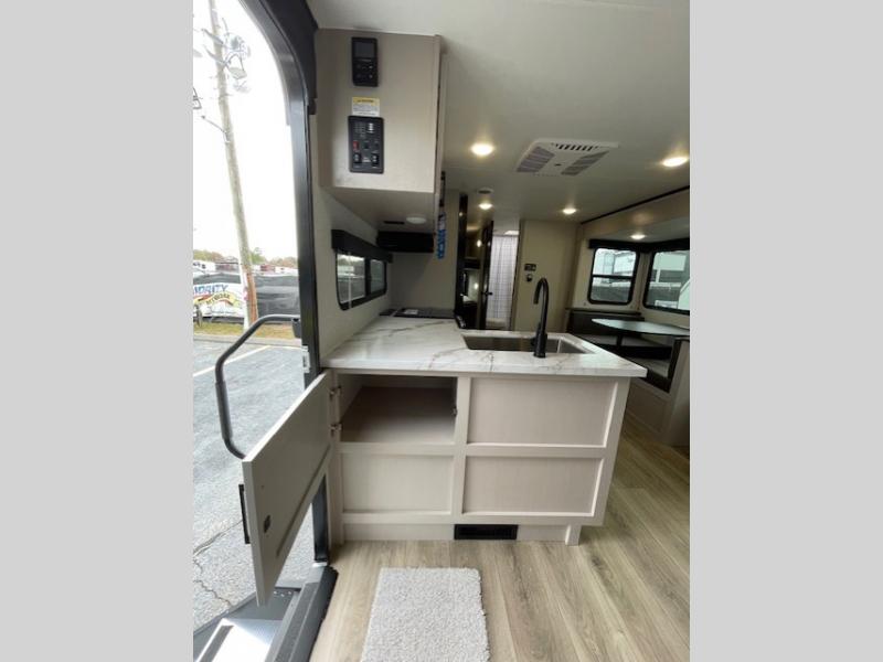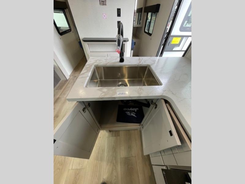 Camp light and camp convenient in a Jay Feather SL by Jayco! This lightweight travel trailer is constructed with a Magnum Truss roof system, a fully integrated A-frame, and exterior Azdel composite panels for added durability. There are also nitrogen-filled radial tires outside, along with large downspouts, MORryde Step Above entry steps, a power awning with LED lights, and a power tongue jack to name a few conveniences. Head inside to enjoy the vinyl flooring throughout, solid hardwood cabinet doors, a shower surround, and residential-style kitchen countertops to make your space feel a little more like home!
