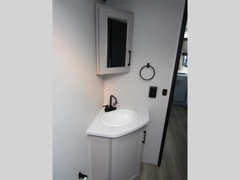 Camp light and camp convenient in a Jay Feather SL by Jayco! This lightweight travel trailer is constructed with a Magnum Truss roof system, a fully integrated A-frame, and exterior Azdel composite panels for added durability. There are also nitrogen-filled radial tires outside, along with large downspouts, MORryde Step Above entry steps, a power awning with LED lights, and a power tongue jack to name a few conveniences. Head inside to enjoy the vinyl flooring throughout, solid hardwood cabinet doors, a shower surround, and residential-style kitchen countertops to make your space feel a little more like home!