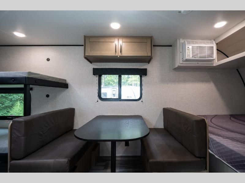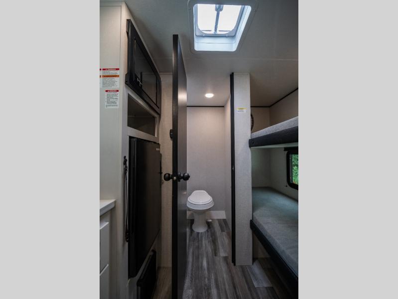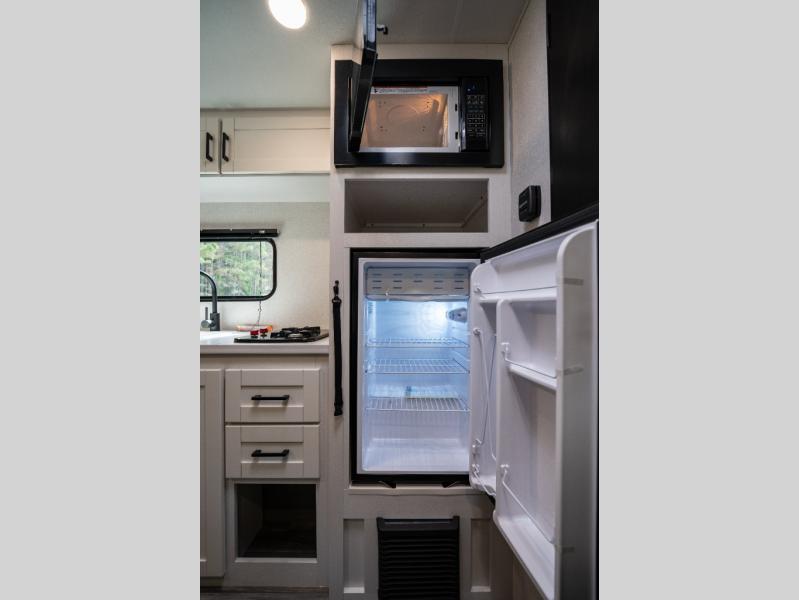 Weighing under 3,500 lbs, the 170BH is easy to tow with most SUVs and small trucks, making it ideal for first-time RVers or anyone looking for a stress-free towing experience. Inside, you’ll find a well-appointed interior featuring a front queen bed, rear bunk beds, a convertible dinette, and a fully equipped kitchen with a 2-burner range, microwave, and 3 cu. ft. refrigerator.