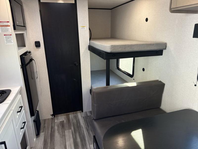 Your crew of five will love camping in this single-axle travel trailer! There are bunk beds in the rear corner and a full bath in the other rear corner for easy nighttime use. You will have the front queen bed to yourselves, along with an overhead shelf and a nightstand/wardrobe for your clothes. The booth dinette provides a place to dine, play games, and even let an extra guest stay over. The Customer Value Package on this Sport Edition model includes a 19K BTU furnace, stabilizer jacks, a power awning, an entry door with a window and shade prep, and many more stand-out features!