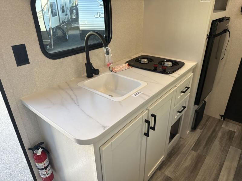 The Jayco Jay Flight SLX travel trailer is quite easy to own because it is lightweight for an easier towing experience. Built on a fully integrated A-frame with galvanized-steel, impact-resistant wheel wells, the Jay Flight SLX has quality at its very foundation. That quality continues on to the electric self-adjusting brakes, easy-lube hubs, Magnum Truss roof system, and LP quick connect. Some of what the mandatory Customer Value Package includes is backup camera prep, Keyed-Alike entry and baggage doors, and an on-demand tankless water heater.