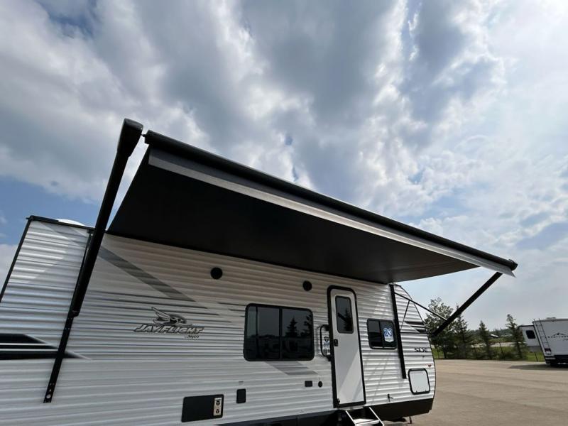 With any Jay Flight travel trailer or toy hauler by Jayco, you can enjoy camping trips to the max! There are a wide variety of floorplans to choose from, so whether you're looking for a couple's unit or bunkhouse model, there is sure to be a Jay Flight for you. Each model is constructed with a Magnum Truss roof system, an enclosed and heated underbelly, and I-Class cambered structural steel I-beams for added support. The interior will have you feeling right at home with residential-style kitchen countertops and hidden cabinet door hinges, vinyl flooring throughout, including slide floors, plus a 6' 9" ceiling height for added head space. The standard features continue on with the mandatory Customer Value Package that includes Keyed-Alike entry and baggage doors, an Overland 1 Solar Package, a Rock-Solid stabilizer system, backup and side view camera prep, and so much more!