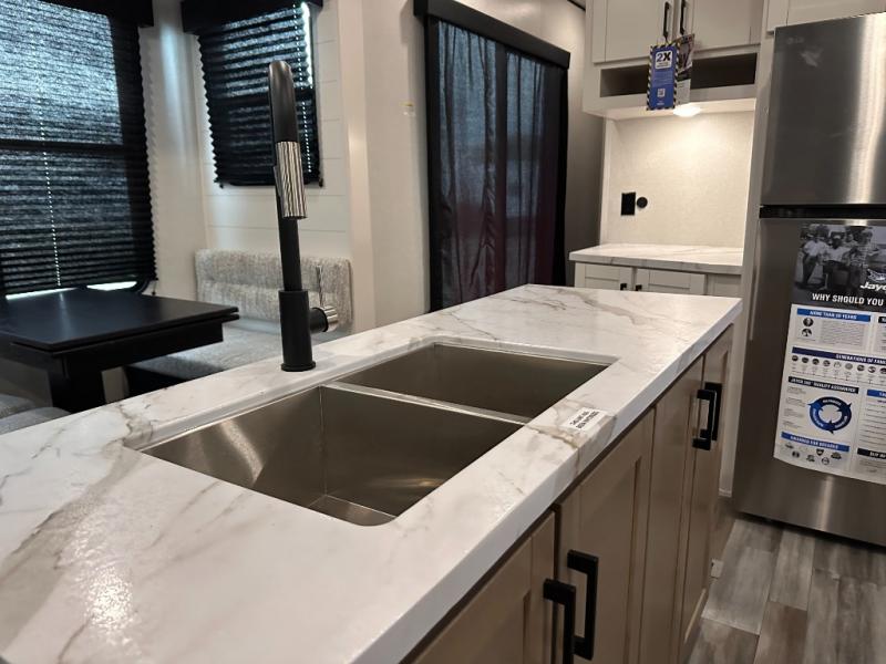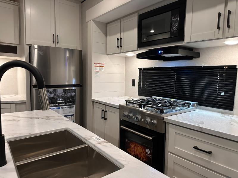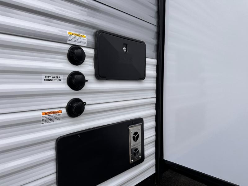 Each Jay Flight Bungalow travel trailer by Jayco features a Magnum Truss roof system, 12 in. I-Class cambered structural steel I-beams, and an insulated and enclosed underbelly for added protection against the elements. You will love the open living space and the atrium-style front wall, along with oversized side windows and hardwood look vinyl flooring. An on-demand tankless water heater will provide endless hot showers, and you're sure to stay comfortable with two A/C units. These travel trailers also include an AM/FM/Bluetooth stereo and marine grade exterior speakers, a power awning with an LED light, an outside shower, plus many more exterior conveniences!