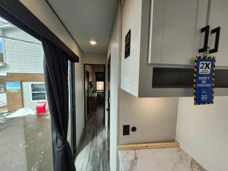 Each Jay Flight Bungalow travel trailer by Jayco features a Magnum Truss roof system, 12 in. I-Class cambered structural steel I-beams, and an insulated and enclosed underbelly for added protection against the elements. You will love the open living space and the atrium-style front wall, along with oversized side windows and hardwood look vinyl flooring. An on-demand tankless water heater will provide endless hot showers, and you're sure to stay comfortable with two A/C units. These travel trailers also include an AM/FM/Bluetooth stereo and marine grade exterior speakers, a power awning with an LED light, an outside shower, plus many more exterior conveniences!