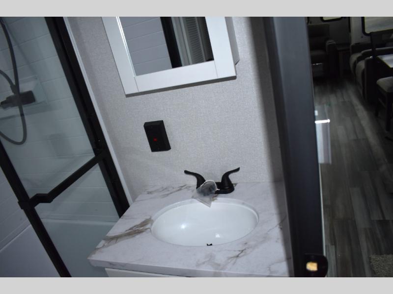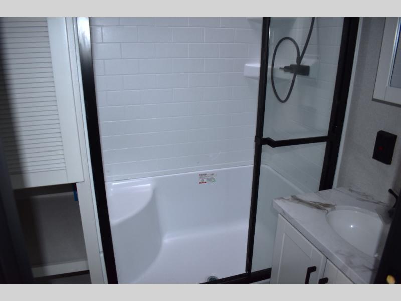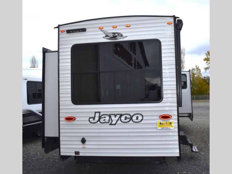 Each Jay Flight Bungalow travel trailer by Jayco features a Magnum Truss roof system, 12 in. I-Class cambered structural steel I-beams, and an insulated and enclosed underbelly for added protection against the elements. You will love the open living space and the atrium-style front wall, along with oversized side windows and hardwood look vinyl flooring. An on-demand tankless water heater will provide endless hot showers, and you're sure to stay comfortable with two A/C units. These travel trailers also include an AM/FM/Bluetooth stereo and marine grade exterior speakers, a power awning with an LED light, an outside shower, plus many more exterior conveniences!