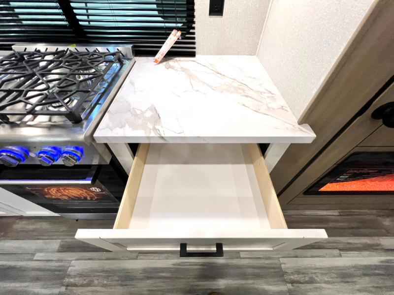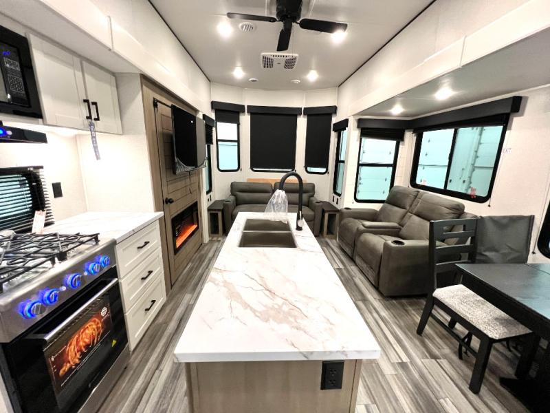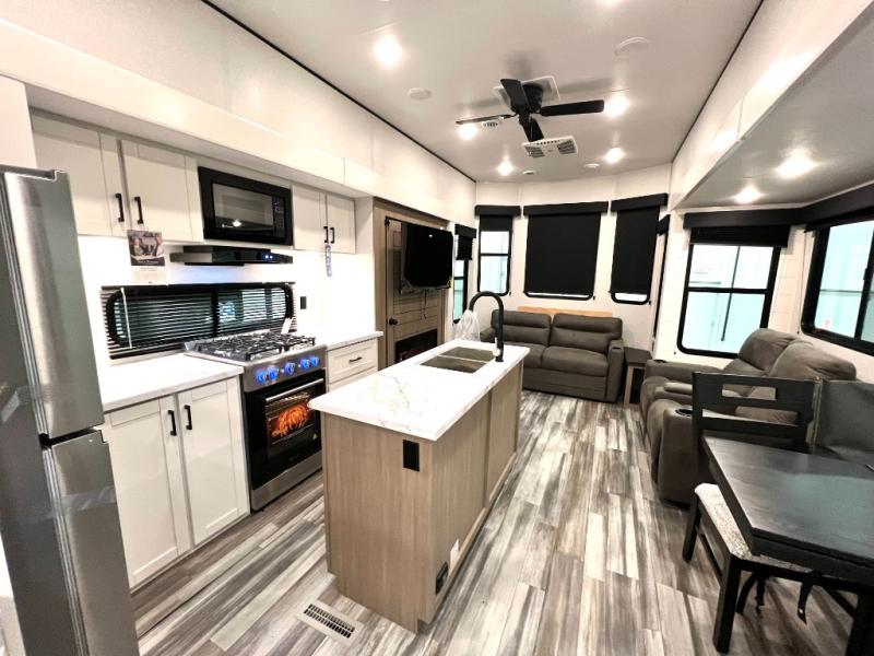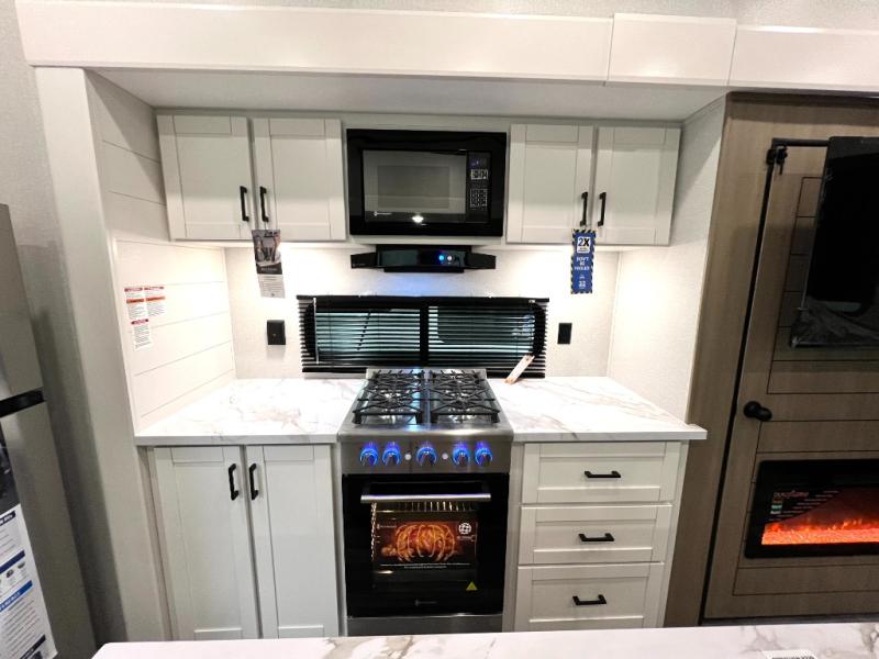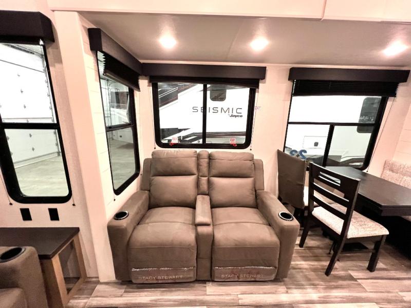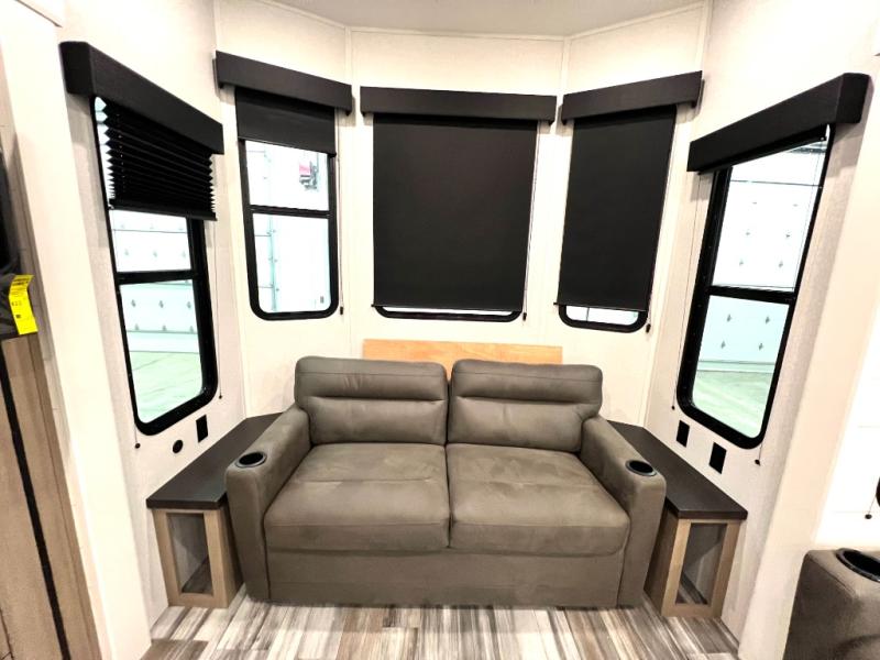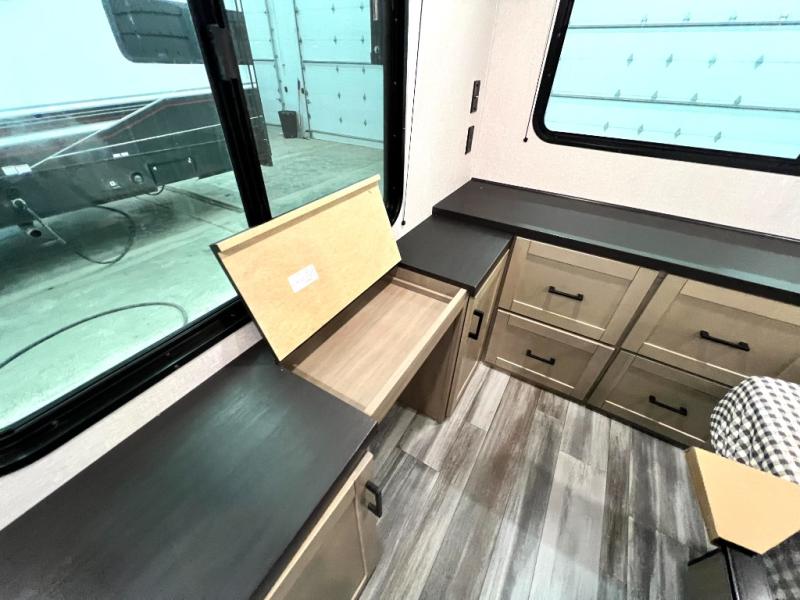 Your crew of four will love extended stays in this triple slide out trailer! This unit has a similar layout to 401FLTS DS, but you'll enjoy the added double loft areas in this Jay Flight Bungalow! There are three bunk mats here, two wardrobes, storage shelves, and TV prep if you plan to add entertainment. Once you've unpacked your bags, you can head to the kitchen to prepare lunch on the cooktop and kitchen island. There is a table and chairs with a bench to dine at, and you can relax on the theater seat after your meal is cleaned up. A front tri-fold sofa will provide more seating space, along with sleeping space for guests. A full bath includes washer and dryer prep if you plan to add these appliances, and the rear private bedroom is sure to make you feel right at home. There is a queen bed slide, a wardrobe, vanity, and large dresser so nothing gets left behind!