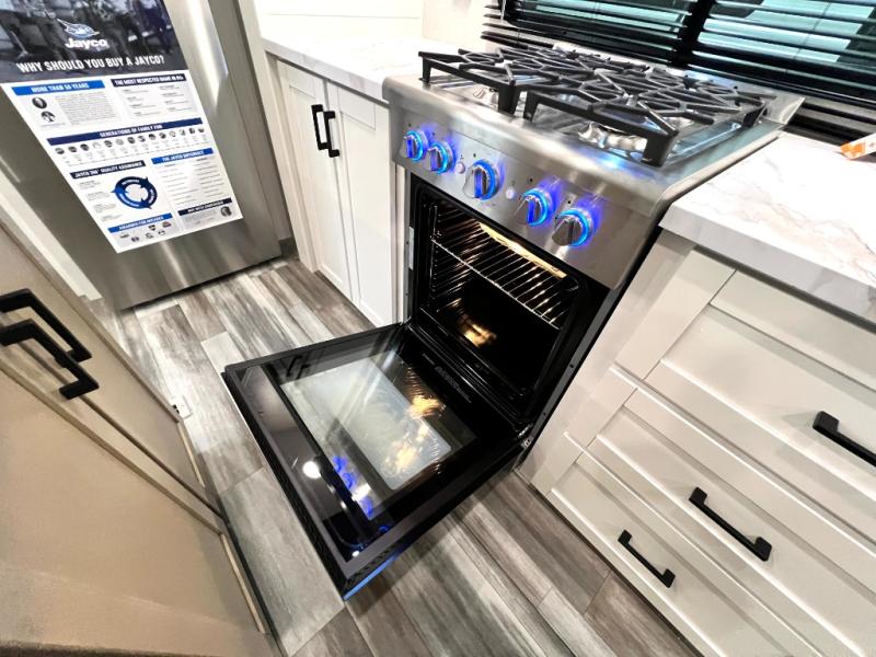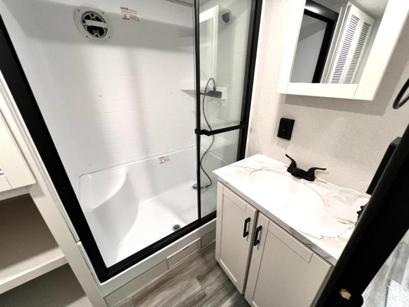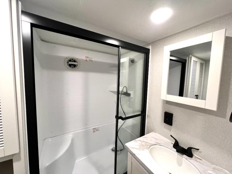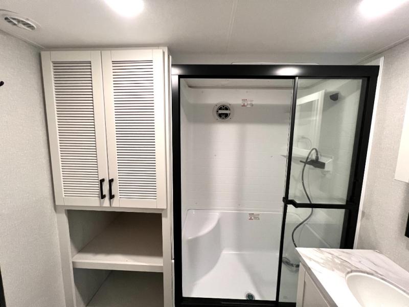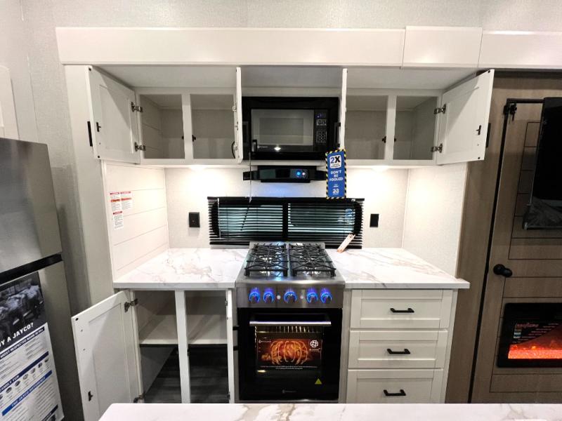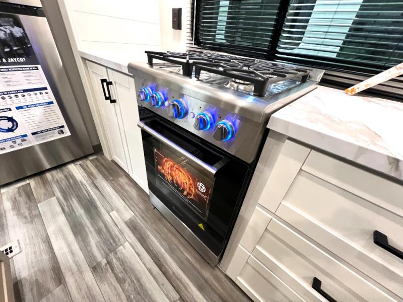 Each Jay Flight Bungalow travel trailer by Jayco features a Magnum Truss roof system, 12 in. I-Class cambered structural steel I-beams, and an insulated and enclosed underbelly for added protection against the elements. You will love the open living space and the atrium-style front wall, along with oversized side windows and hardwood look vinyl flooring. An on-demand tankless water heater will provide endless hot showers, and you're sure to stay comfortable with two A/C units. These travel trailers also include an AM/FM/Bluetooth stereo and marine grade exterior speakers, a power awning with an LED light, an outside shower, plus many more exterior conveniences!