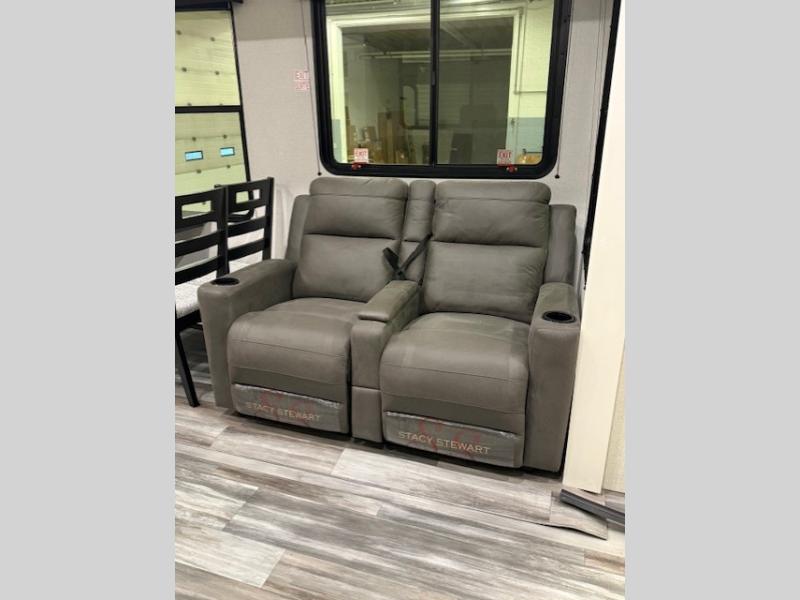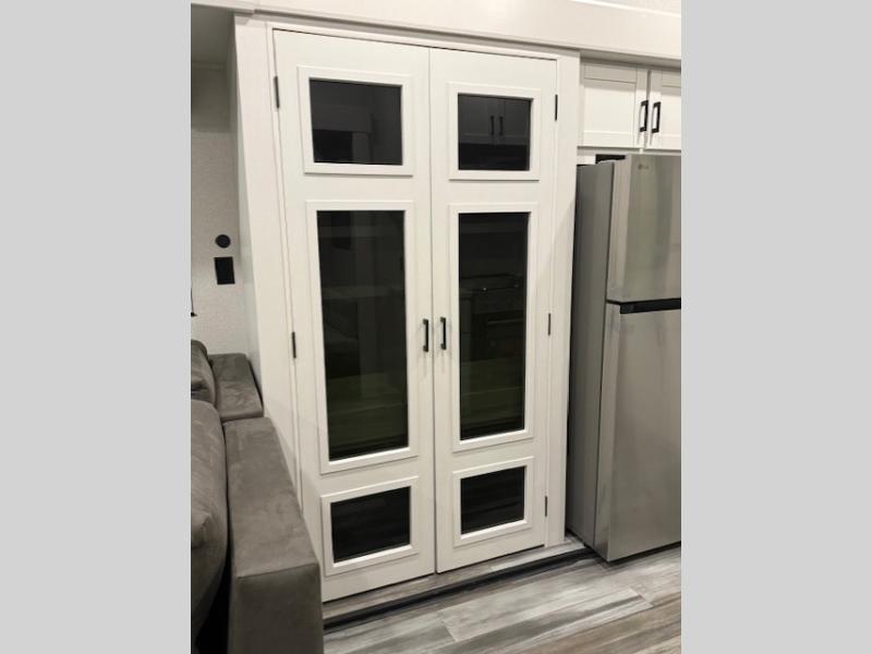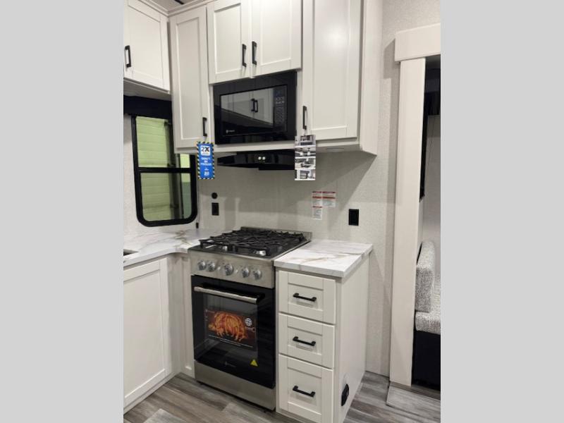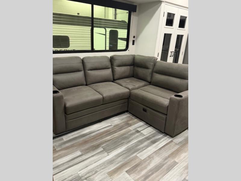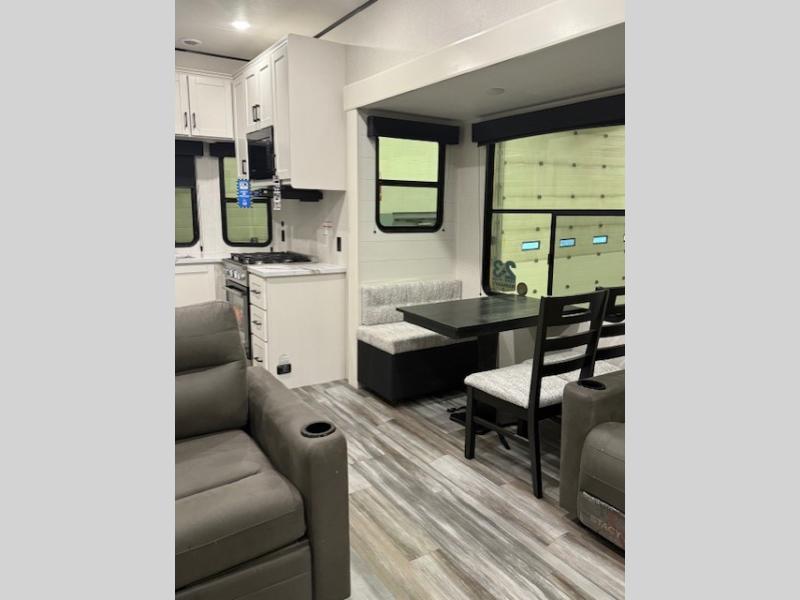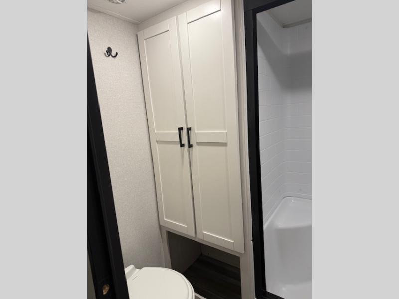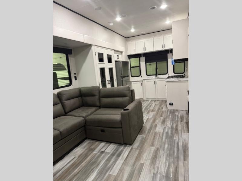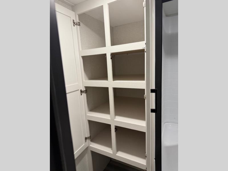 It won't be hard to find comfort in this spacious trailer for eight! The front kitchen features ample counter space to prep meals plus a residential refrigerator and double door pantry for food storage! You can dine at the table and chairs with a bench, then head to the living area to relax on the tri-fold L-lounge with a recliner on rollers. Across from the sliding patio doors, you'll find the spacious full bath, and the steps next to the bath lead to the double loft areas. The little ones will have three bunk mats to sleep on, two loft desks, shelves, and TV prep for added convenience! And don't overlook the spacious rear private bedroom with a queen bed slide, storage space, plus washer and dryer prep if you want the option to make laundry day easier!