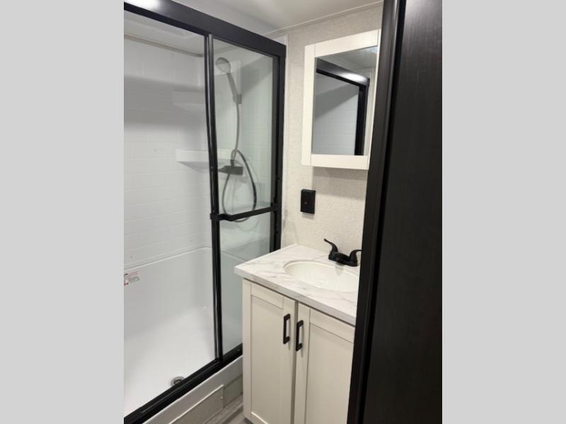 Each Jay Flight Bungalow travel trailer by Jayco features a Magnum Truss roof system, 12 in. I-Class cambered structural steel I-beams, and an insulated and enclosed underbelly for added protection against the elements. You will love the open living space and the atrium-style front wall, along with oversized side windows and hardwood look vinyl flooring. An on-demand tankless water heater will provide endless hot showers, and you're sure to stay comfortable with two A/C units. These travel trailers also include an AM/FM/Bluetooth stereo and marine grade exterior speakers, a power awning with an LED light, an outside shower, plus many more exterior conveniences!