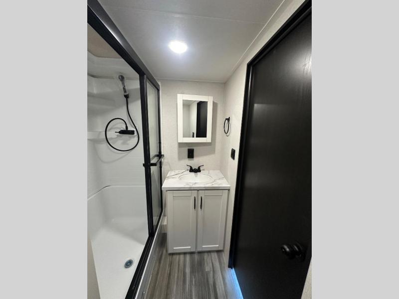 Each Jay Flight Bungalow travel trailer by Jayco features a Magnum Truss roof system, 12 in. I-Class cambered structural steel I-beams, and an insulated and enclosed underbelly for added protection against the elements. You will love the open living space and the atrium-style front wall, along with oversized side windows and hardwood look vinyl flooring. An on-demand tankless water heater will provide endless hot showers, and you're sure to stay comfortable with two A/C units. These travel trailers also include an AM/FM/Bluetooth stereo and marine grade exterior speakers, a power awning with an LED light, an outside shower, plus many more exterior conveniences!