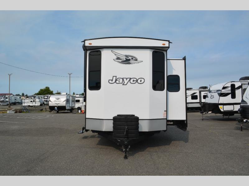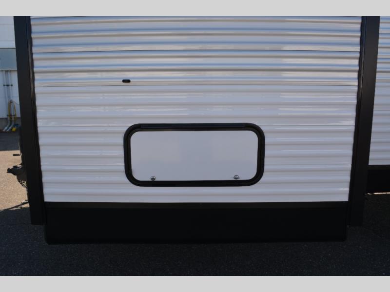 Each Jay Flight Bungalow travel trailer by Jayco features a Magnum Truss roof system, 12 in. I-Class cambered structural steel I-beams, and an insulated and enclosed underbelly for added protection against the elements. You will love the open living space and the atrium-style front wall, along with oversized side windows and hardwood look vinyl flooring. An on-demand tankless water heater will provide endless hot showers, and you're sure to stay comfortable with two A/C units. These travel trailers also include an AM/FM/Bluetooth stereo and marine grade exterior speakers, a power awning with an LED light, an outside shower, plus many more exterior conveniences!