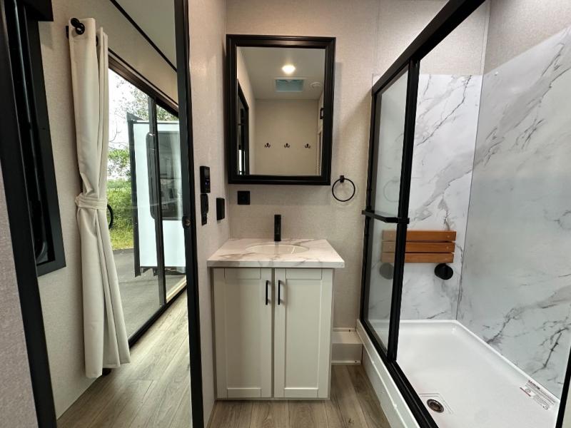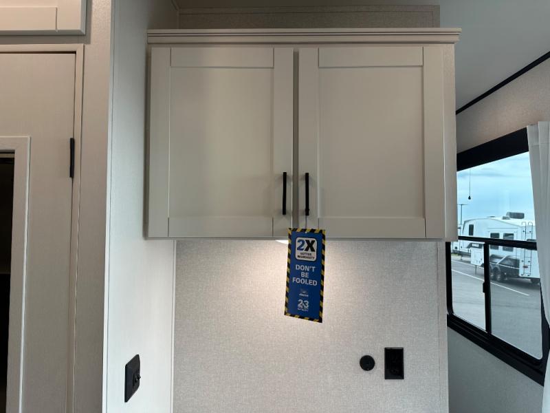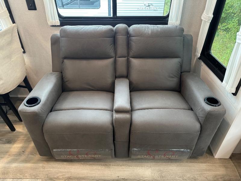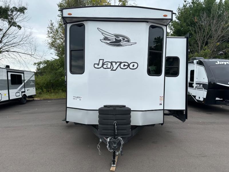Each Jay Flight Bungalow travel trailer by Jayco features a Magnum Truss roof system, 12 in. I-Class cambered structural steel I-beams, and an insulated and enclosed underbelly for added protection against the elements. You will love the open living space and the atrium-style front wall, along with oversized side windows and hardwood look vinyl flooring. An on-demand tankless water heater will provide endless hot showers, and you're sure to stay comfortable with two A/C units. These travel trailers also include an AM/FM/Bluetooth stereo and marine grade exterior speakers, a power awning with an LED light, an outside shower, plus many more exterior conveniences!