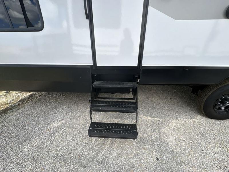 Each Jay Flight Bungalow travel trailer by Jayco features a Magnum Truss roof system, 12 in. I-Class cambered structural steel I-beams, and an insulated and enclosed underbelly for added protection against the elements. You will love the open living space and the atrium-style front wall, along with oversized side windows and hardwood look vinyl flooring. An on-demand tankless water heater will provide endless hot showers, and you're sure to stay comfortable with two A/C units. These travel trailers also include an AM/FM/Bluetooth stereo and marine grade exterior speakers, a power awning with an LED light, an outside shower, plus many more exterior conveniences!