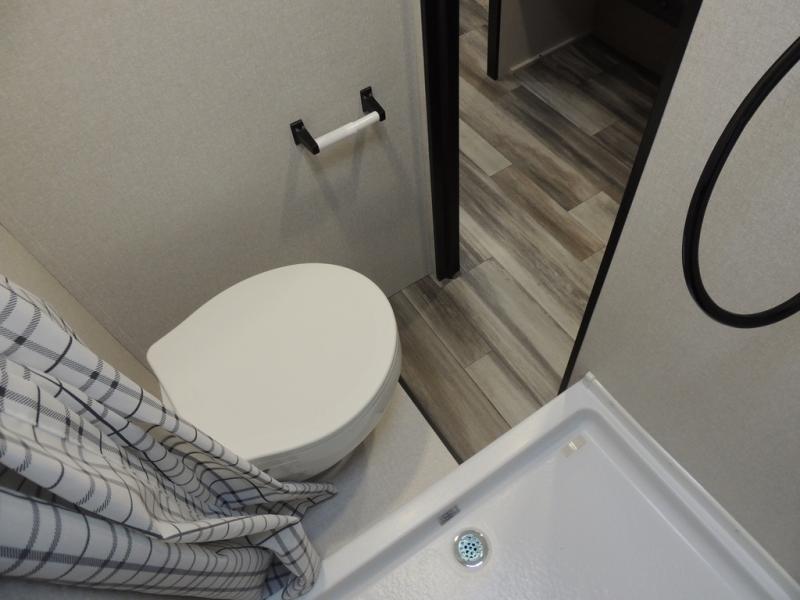 Your crew of four will love camping in this cozy travel trailer! There are bunk beds in the rear corner and a private bath in the other rear corner for easy nighttime use. You will have the front bed to yourselves, along with an overhead shelf and a nightstand/wardrobe for your clothes. The Customer Value Package on this Sport Edition model includes a 19K BTU furnace, stabilizer jacks, a power awning, an entry door with a window and shade prep, and many more stand-out features!