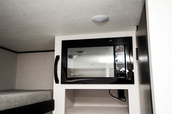 Your crew of four will love camping in this cozy travel trailer! There are bunk beds in the rear corner and a private bath in the other rear corner for easy nighttime use. You will have the front bed to yourselves, along with an overhead shelf and a nightstand/wardrobe for your clothes. The Customer Value Package on this Sport Edition model includes a 19K BTU furnace, stabilizer jacks, a power awning, an entry door with a window and shade prep, and many more stand-out features!
