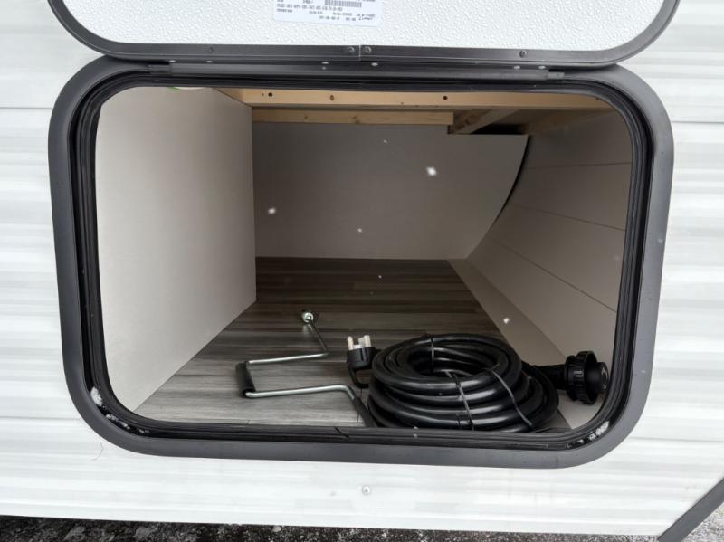 The Jayco Jay Flight SLX travel trailer is quite easy to own because it is lightweight for an easier towing experience. Built on a fully integrated A-frame with galvanized-steel, impact-resistant wheel wells, the Jay Flight SLX has quality at its very foundation. That quality continues on to the electric self-adjusting brakes, easy-lube hubs, Magnum Truss roof system, and LP quick connect. Some of what the mandatory Customer Value Package includes is backup camera prep, Keyed-Alike entry and baggage doors, and an on-demand tankless water heater.