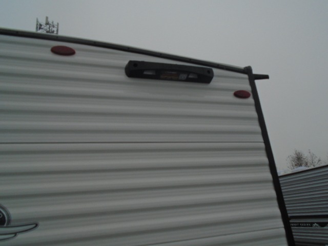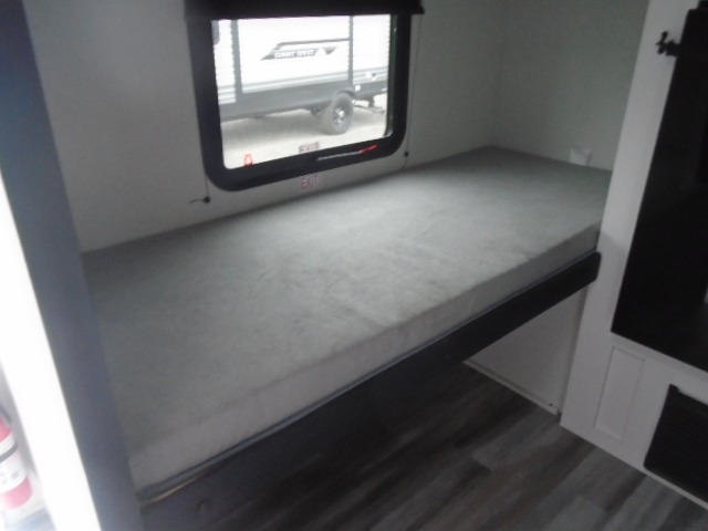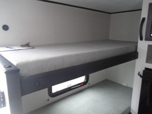 Your crew of four will love camping in this cozy travel trailer! There are bunk beds in the rear corner and a private bath in the other rear corner for easy nighttime use. You will have the front bed to yourselves, along with an overhead shelf and a nightstand/wardrobe for your clothes. The Customer Value Package on this Sport Edition model includes a 19K BTU furnace, stabilizer jacks, a power awning, an entry door with a window and shade prep, and many more stand-out features!