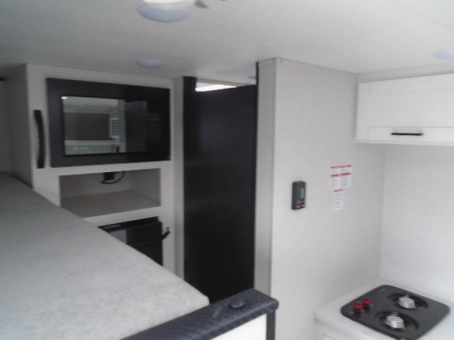 Your crew of four will love camping in this cozy travel trailer! There are bunk beds in the rear corner and a private bath in the other rear corner for easy nighttime use. You will have the front bed to yourselves, along with an overhead shelf and a nightstand/wardrobe for your clothes. The Customer Value Package on this Sport Edition model includes a 19K BTU furnace, stabilizer jacks, a power awning, an entry door with a window and shade prep, and many more stand-out features!