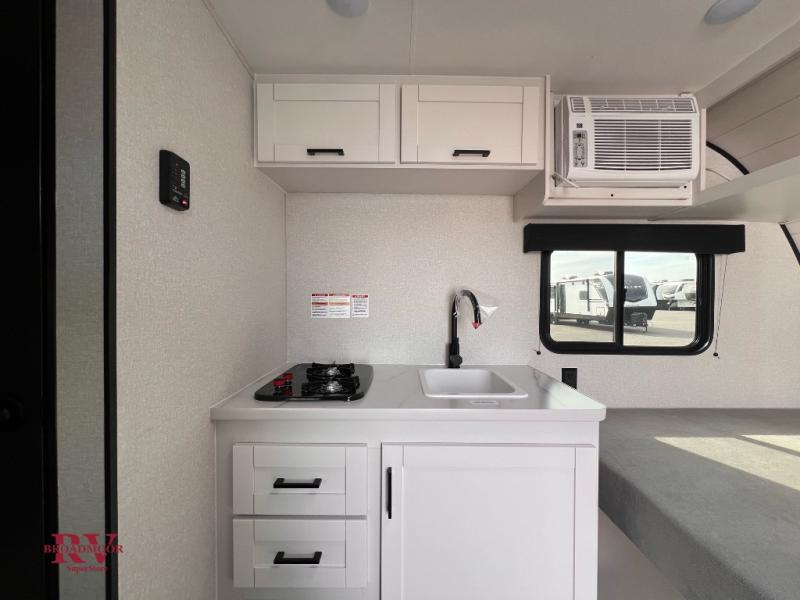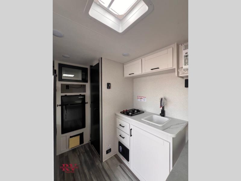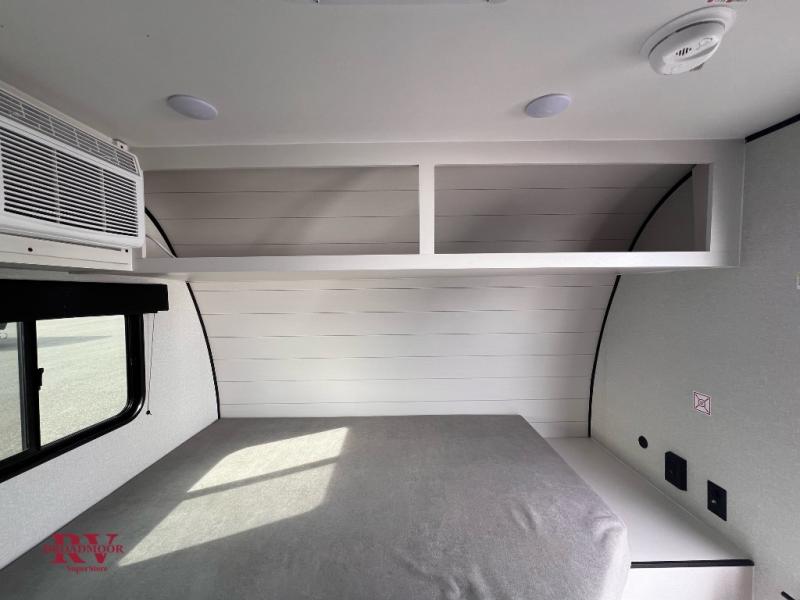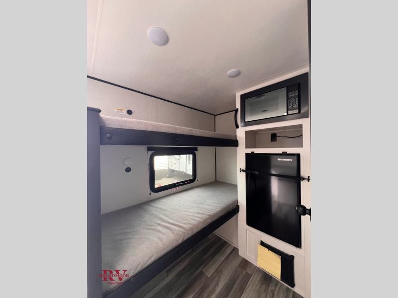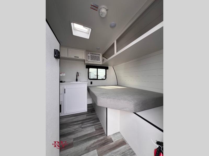 Your crew of four will love camping in this cozy travel trailer! There are bunk beds in the rear corner and a private bath in the other rear corner for easy nighttime use. You will have the front bed to yourselves, along with an overhead shelf and a nightstand/wardrobe for your clothes. The Customer Value Package on this Sport Edition model includes a 19K BTU furnace, stabilizer jacks, a power awning, an entry door with a window and shade prep, and many more stand-out features!