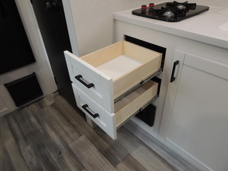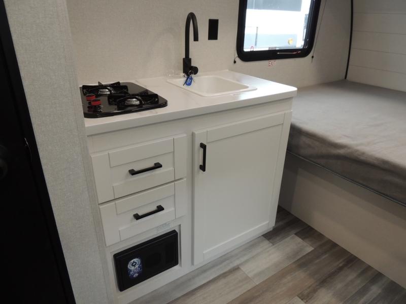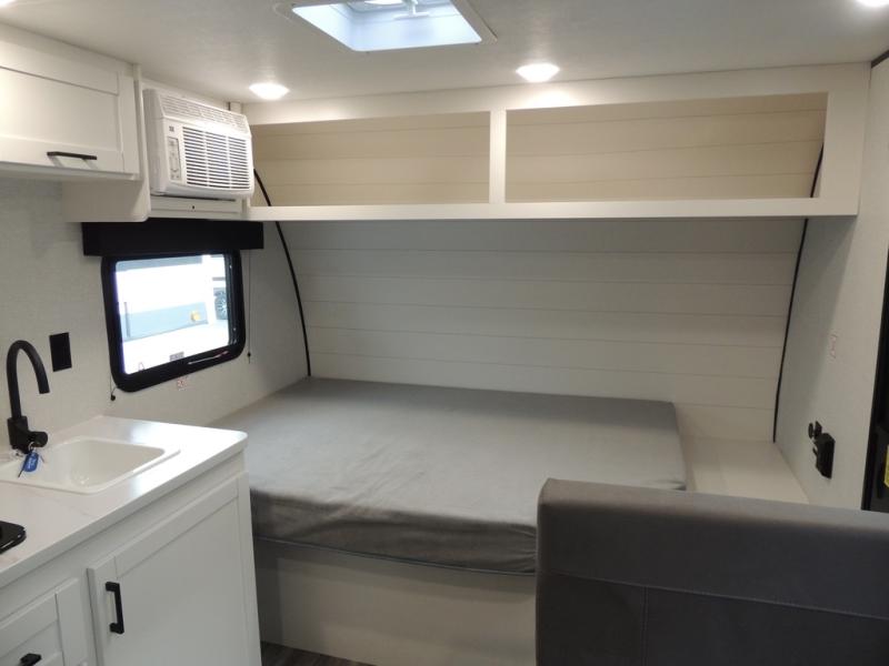You will love camping in this cozy travel trailer! There is a rear corner booth dinette for dining space and a private bath in the other rear corner to freshen up. You will have the front bed to yourselves, along with an overhead shelf and a nightstand/wardrobe for your clothes. The Customer Value Package on this Sport Edition model includes a 19K BTU furnace, stabilizer jacks, a power awning, an entry door with a window and shade prep, and many more stand-out features!
