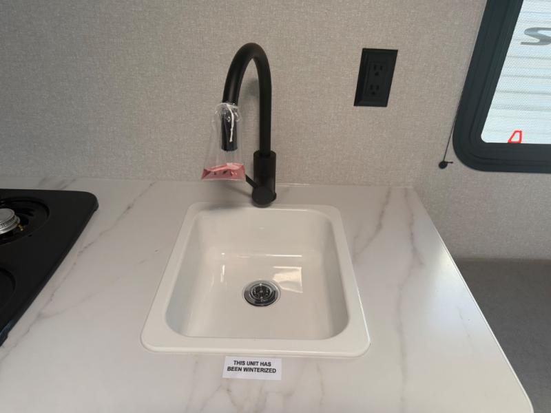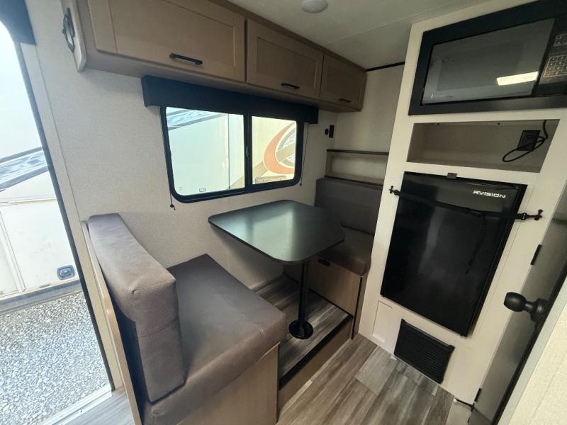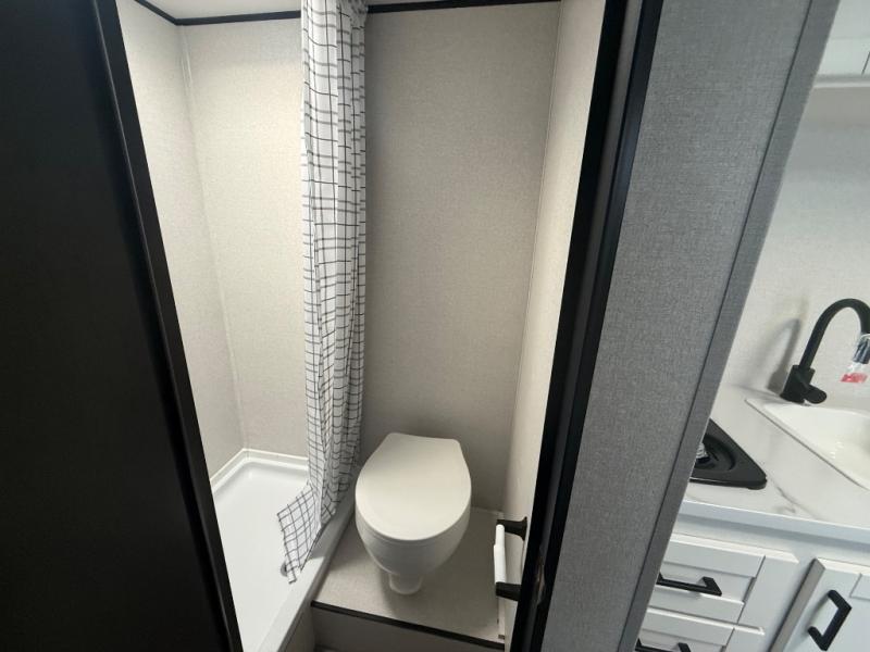 You will love camping in this cozy travel trailer! There is a rear corner booth dinette for dining space and a private bath in the other rear corner to freshen up. You will have the front bed to yourselves, along with an overhead shelf and a nightstand/wardrobe for your clothes. The Customer Value Package on this Sport Edition model includes a 19K BTU furnace, stabilizer jacks, a power awning, an entry door with a window and shade prep, and many more stand-out features!