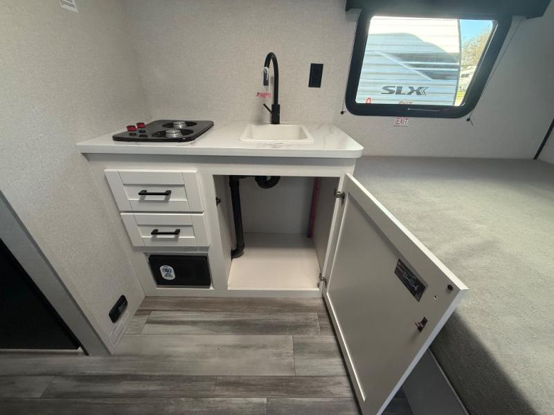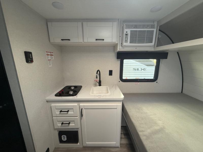 The Jayco Jay Flight SLX travel trailer is quite easy to own because it is lightweight for an easier towing experience. Built on a fully integrated A-frame with galvanized-steel, impact-resistant wheel wells, the Jay Flight SLX has quality at its very foundation. That quality continues on to the electric self-adjusting brakes, easy-lube hubs, and a Magnum Truss roof system. Inside, you'll enjoy vinyl flooring throughout, solid hardwood cabinet doors, residential-style kitchen countertops and many more comforts!