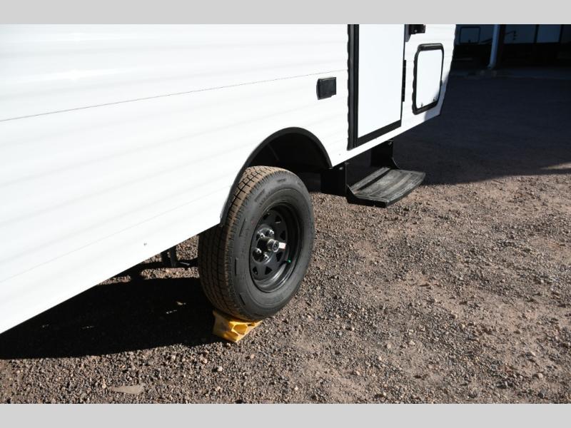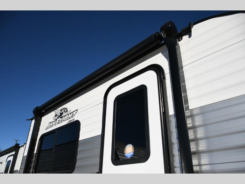 Jay Flight SLX trailers are built to be lightweight and easy to tow, with a fully integrated A-frame and galvanized-steel, impact-resistant wheel wells for durability. Additional features like electric self-adjusting brakes, easy-lube hubs, Magnum Truss roof system, and LP quick connect provide convenience and reliability, while backup camera prep, keyed-alike doors, and an on-demand tankless water heater round out the Customer Value Package.