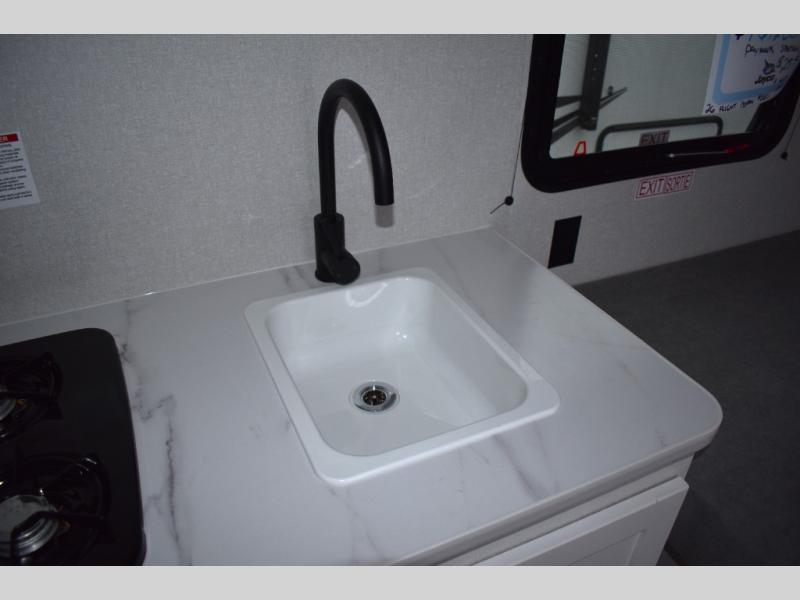 You will love camping in this cozy travel trailer! There is a rear corner booth dinette for dining space and a private bath in the other rear corner to freshen up. You will have the front bed to yourselves, along with an overhead shelf and a nightstand/wardrobe for your clothes. The Customer Value Package on this Sport Edition model includes a 19K BTU furnace, stabilizer jacks, a power awning, an entry door with a window and shade prep, and many more stand-out features!