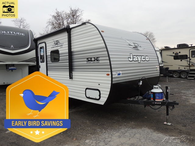 The Jayco Jay Flight SLX travel trailer is quite easy to own because it is lightweight for an easier towing experience. Built on a fully integrated A-frame with galvanized-steel, impact-resistant wheel wells, the Jay Flight SLX has quality at its very foundation. That quality continues on to the electric self-adjusting brakes, easy-lube hubs, Magnum Truss roof system, and LP quick connect. Some of what the mandatory Customer Value Package includes is backup camera prep, Keyed-Alike entry and baggage doors, and an on-demand tankless water heater.