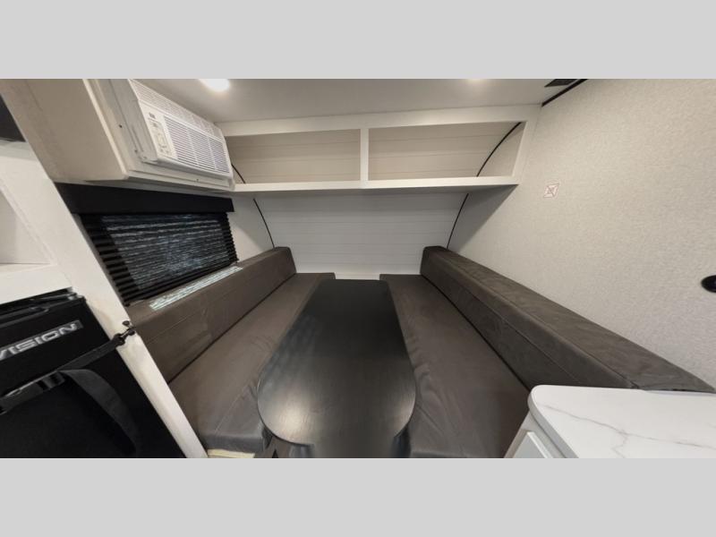 Easy to tow and versatile are just two ways to describe this travel trailer! The front twin beds/bench seats with a table can convert to a king-size bed, and you'll have an overhead shelf to keep your things organized. A two-burner stovetop and microwave will let you cook meals each day, and a 12V refrigerator will keep food fresh. The private bath includes a toilet and shower to clean up in each day, and the dresser just outside the bath will be perfect for clean clothes and towels!