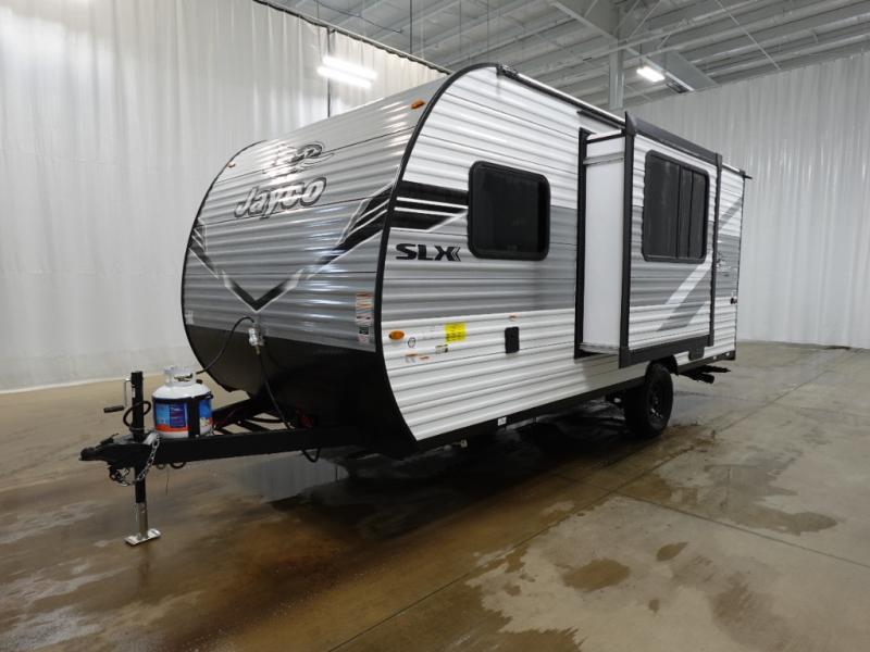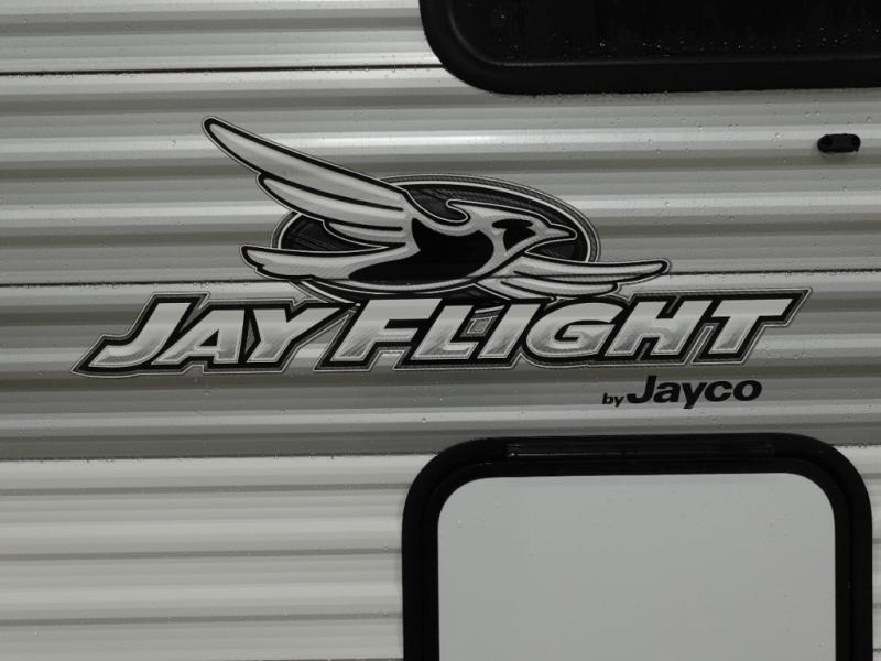 The Jayco Jay Flight SLX travel trailer is quite easy to own because it is lightweight for an easier towing experience. Built on a fully integrated A-frame with galvanized-steel, impact-resistant wheel wells, the Jay Flight SLX has quality at its very foundation. That quality continues on to the electric self-adjusting brakes, easy-lube hubs, Magnum Truss roof system, and LP quick connect. Some of what the mandatory Customer Value Package includes is backup camera prep, Keyed-Alike entry and baggage doors, marine grade exterior speakers, and an on-demand tankless water heater.