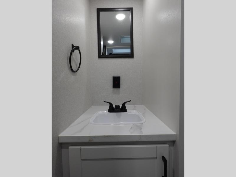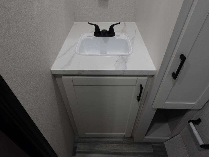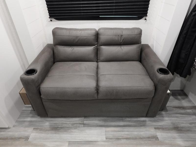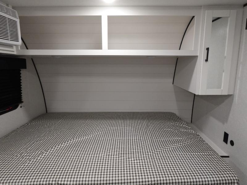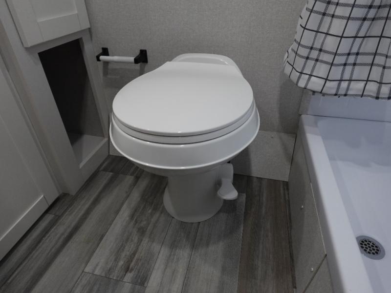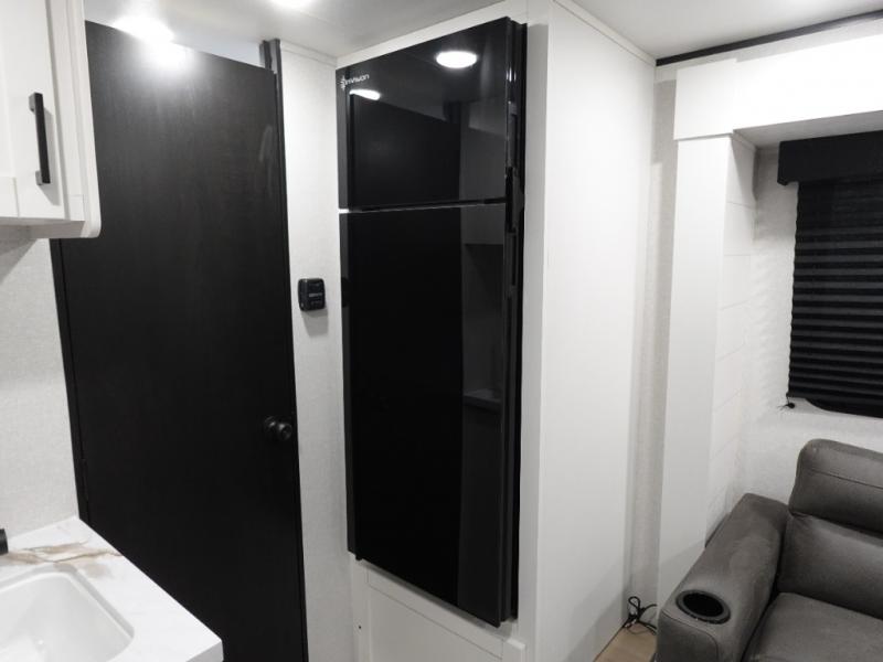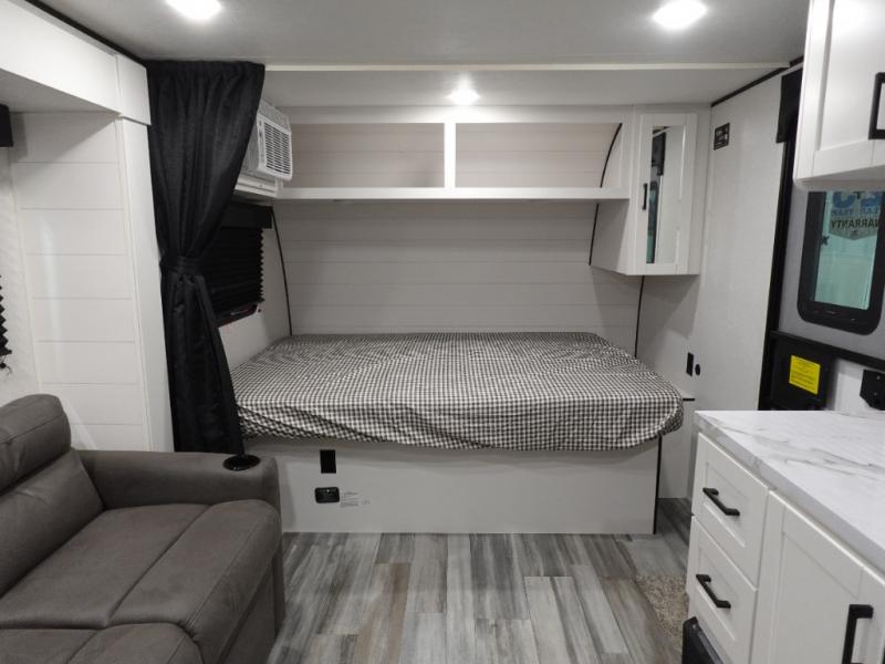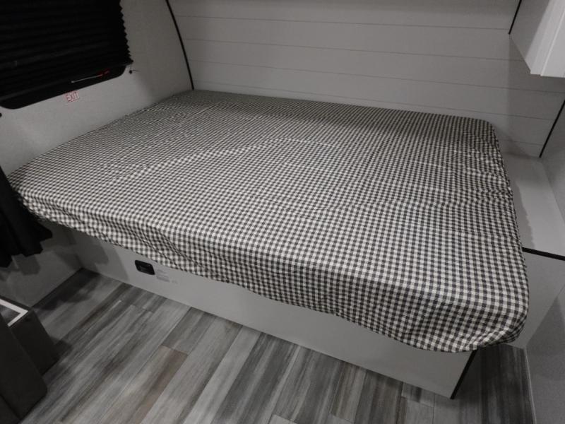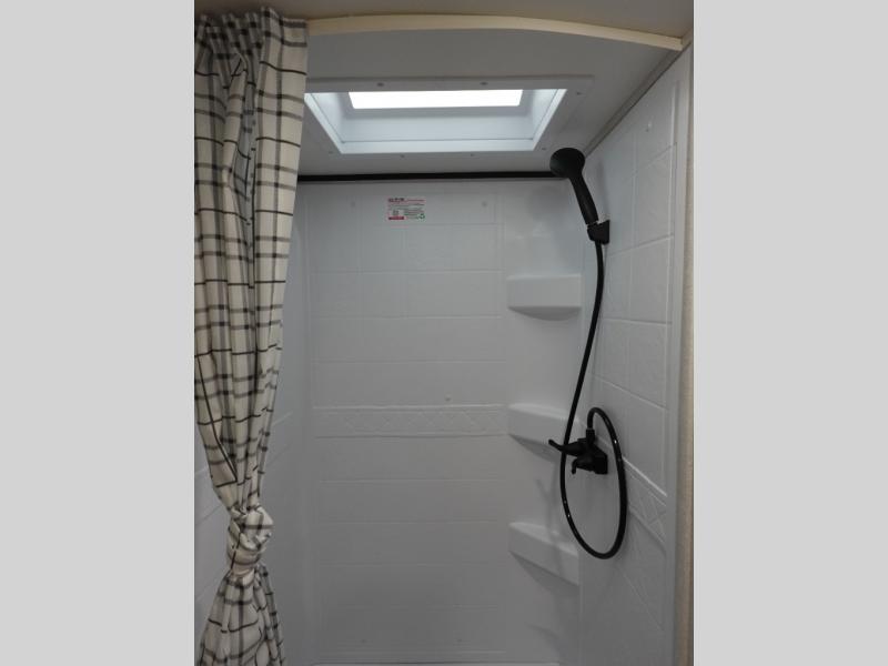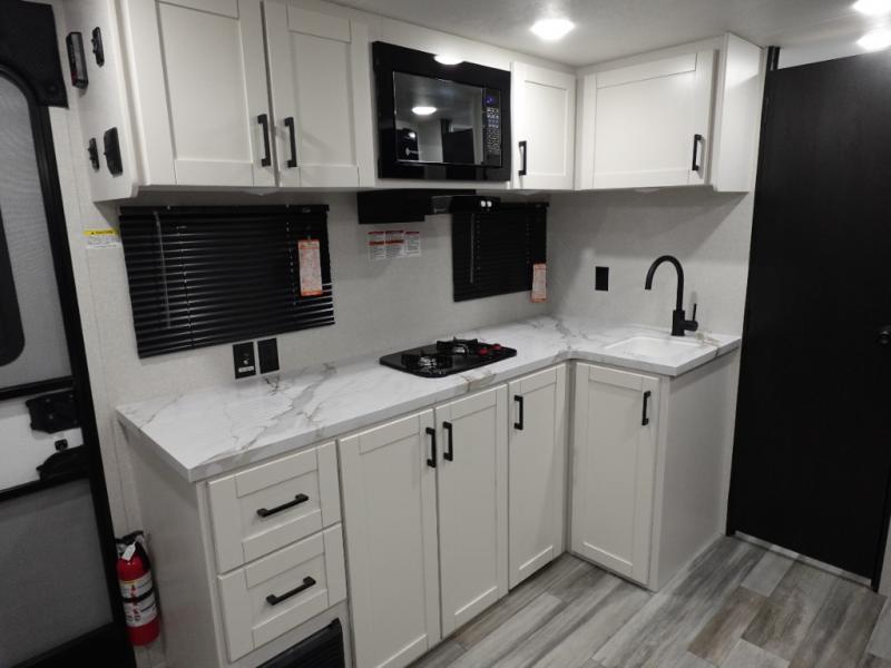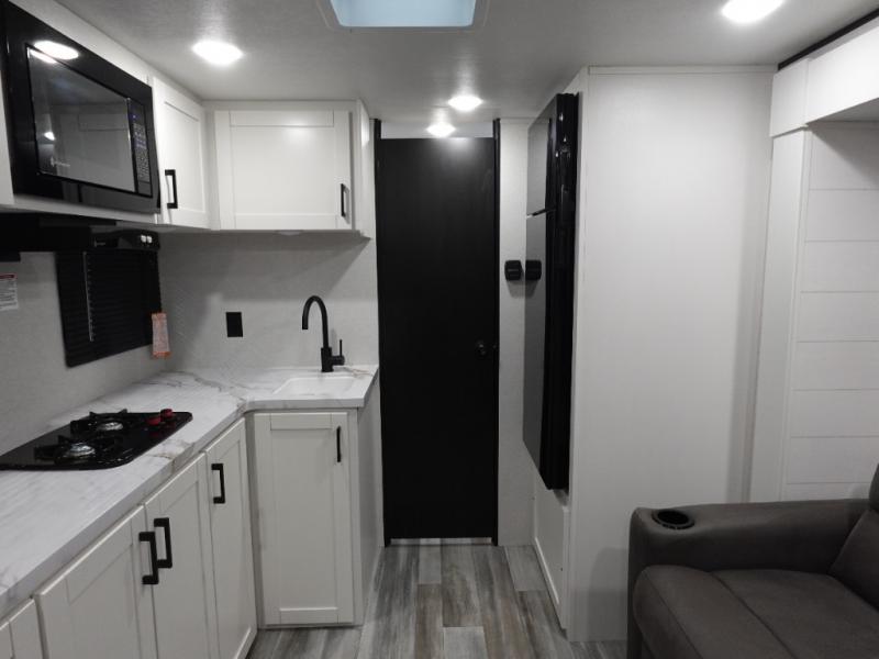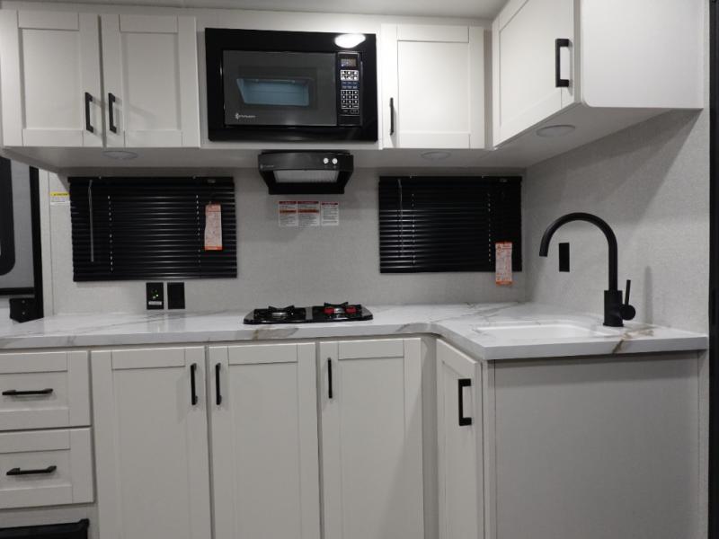 This single-axle couple's travel trailer is sure to bring you happiness at the campground. There is a front queen bed with a privacy curtain if you have a guest staying over on the jack-knife sofa, and the movable table in front of the sofa will provide more floor space when needed. A cooktop and microwave oven will let you make meals each day, and an 8 cu. ft. 12V refrigerator will be perfect for perishables. This model also includes a full rear bath with a tub/shower, a toilet, plus a sink and a linen closet for clean towels.