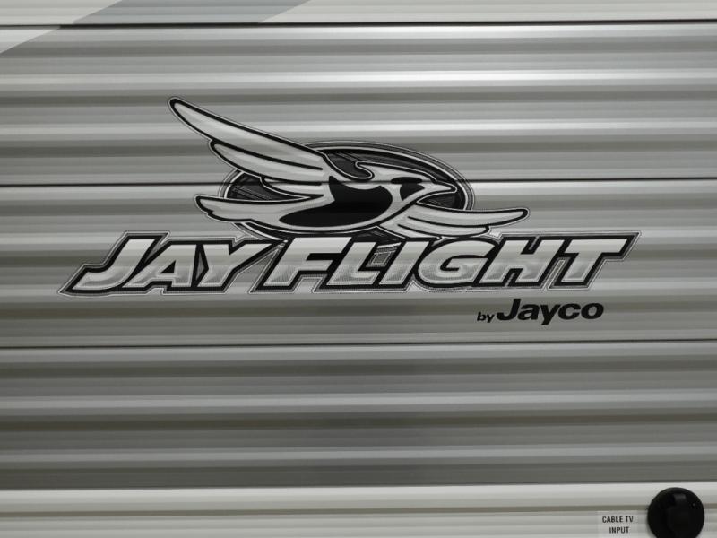 The Jayco Jay Flight SLX travel trailer is quite easy to own because it is lightweight for an easier towing experience. Built on a fully integrated A-frame with galvanized-steel, impact-resistant wheel wells, the Jay Flight SLX has quality at its very foundation. That quality continues on to the electric self-adjusting brakes, easy-lube hubs, Magnum Truss roof system, and LP quick connect. Some of what the mandatory Customer Value Package includes is backup camera prep, Keyed-Alike entry and baggage doors, marine grade exterior speakers, and an on-demand tankless water heater.