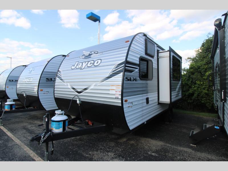 The Jayco Jay Flight SLX travel trailer is quite easy to own because it is lightweight for an easier towing experience. Built on a fully integrated A-frame with galvanized-steel, impact-resistant wheel wells, the Jay Flight SLX has quality at its very foundation. That quality continues on to the electric self-adjusting brakes, easy-lube hubs, Magnum Truss roof system, and LP quick connect. Some of what the mandatory Customer Value Package includes is backup camera prep, Keyed-Alike entry and baggage doors, and an on-demand tankless water heater.