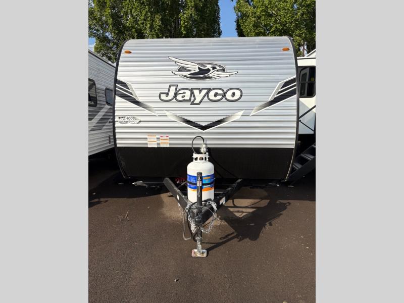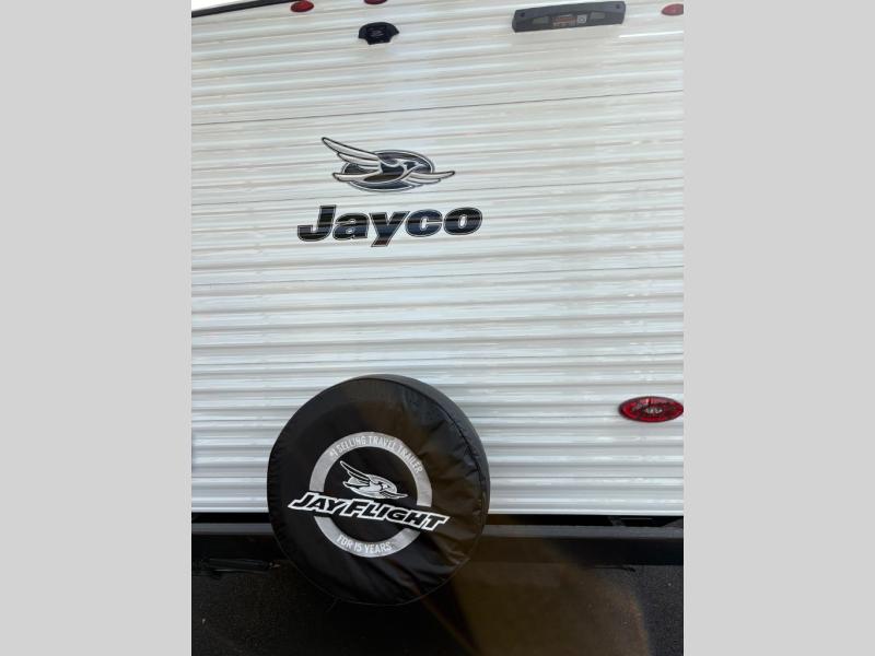 The Jayco Jay Flight SLX travel trailer is quite easy to own because it is lightweight for an easier towing experience. Built on a fully integrated A-frame with galvanized-steel, impact-resistant wheel wells, the Jay Flight SLX has quality at its very foundation. That quality continues on to the electric self-adjusting brakes, easy-lube hubs, Magnum Truss roof system, and LP quick connect. Some of what the mandatory Customer Value Package includes is backup camera prep, Keyed-Alike entry and baggage doors, and an on-demand tankless water heater.