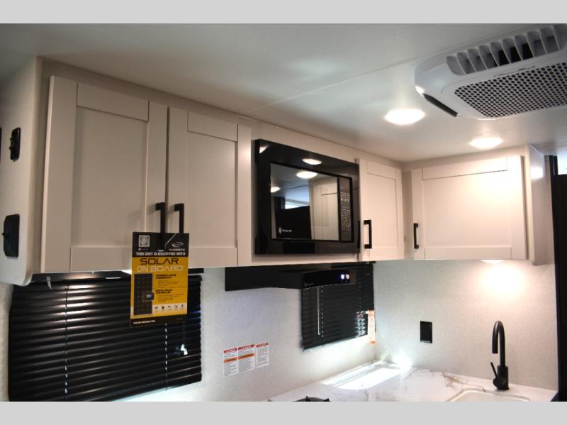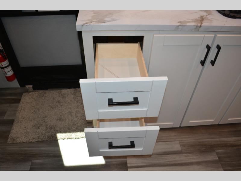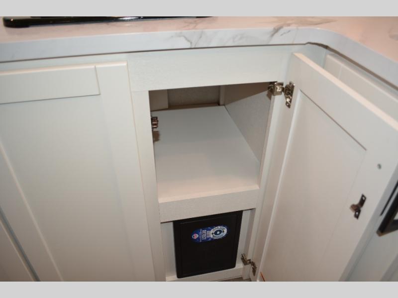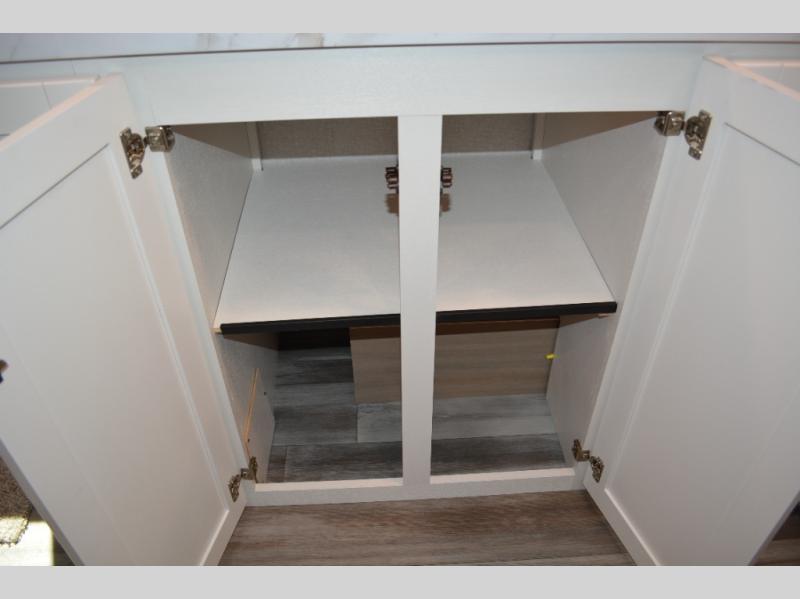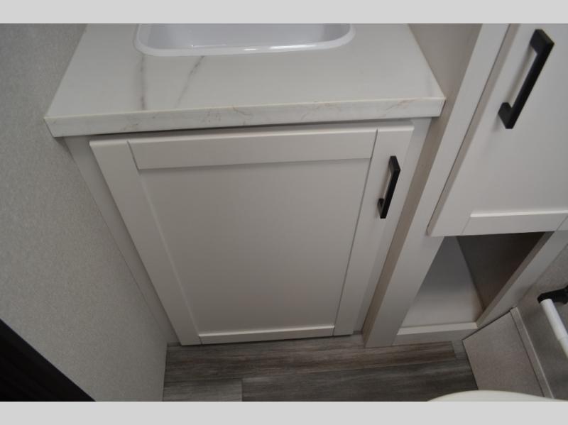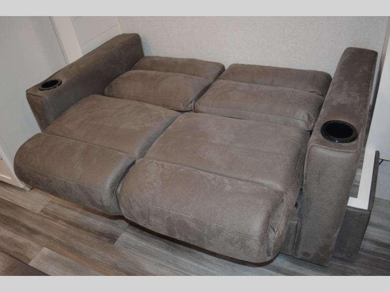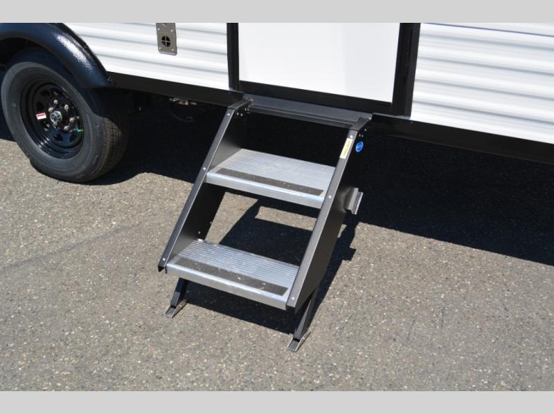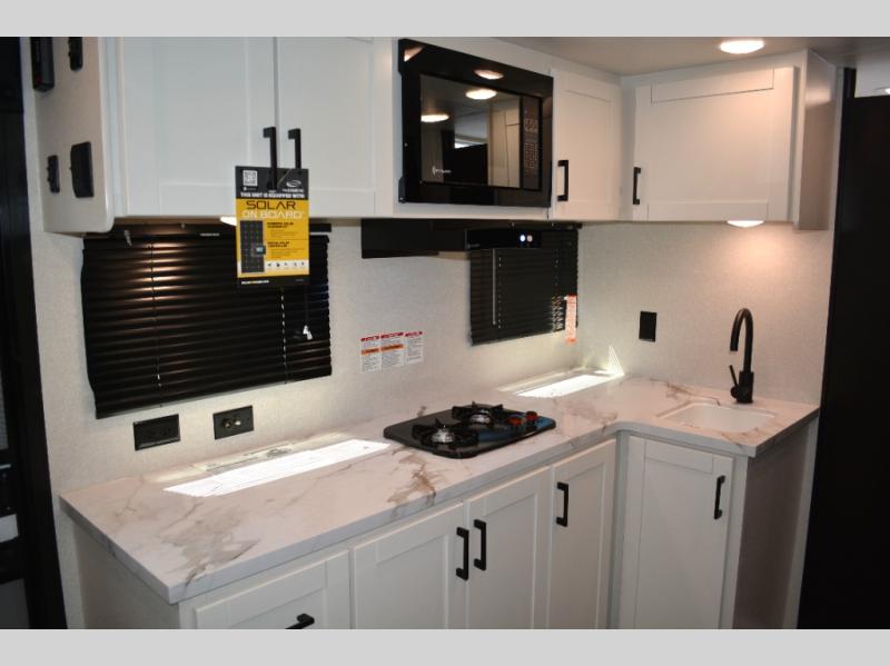 This single-axle couple's travel trailer is sure to bring you happiness at the campground. There is a front queen bed with a privacy curtain if you have a guest staying over on the jack-knife sofa, and the movable table in front of the sofa will provide more floor space when needed. A cooktop and microwave oven will let you make meals each day, and an 8 cu. ft. 12V refrigerator will be perfect for perishables. This model also includes a full rear bath with a shower, a toilet, plus a sink and a linen closet for clean towels.