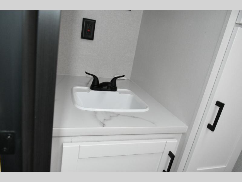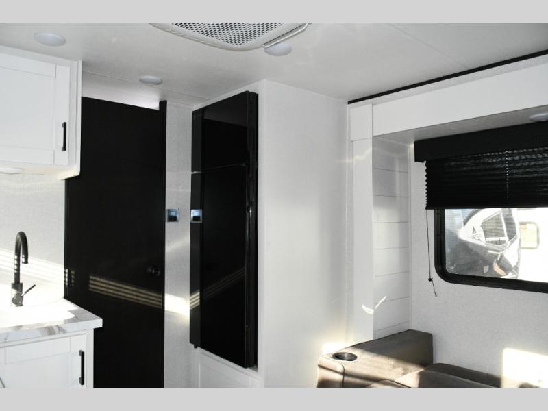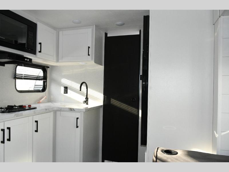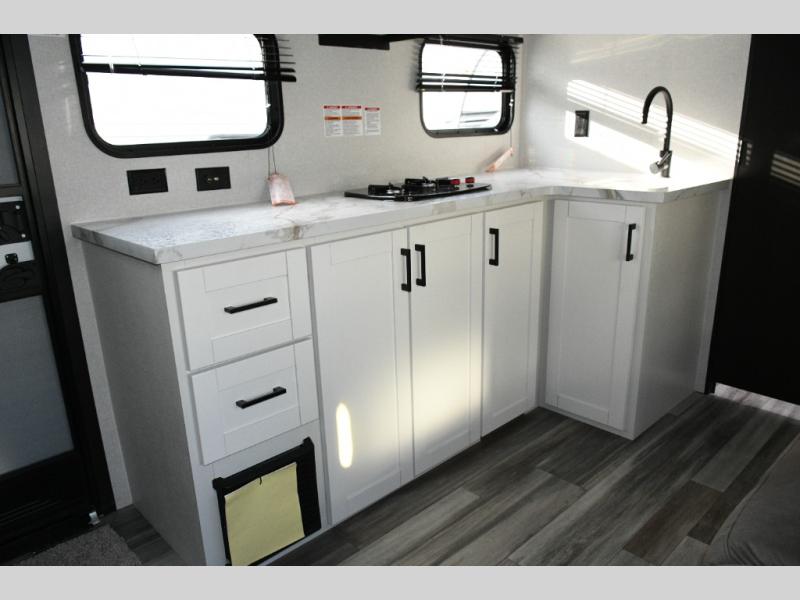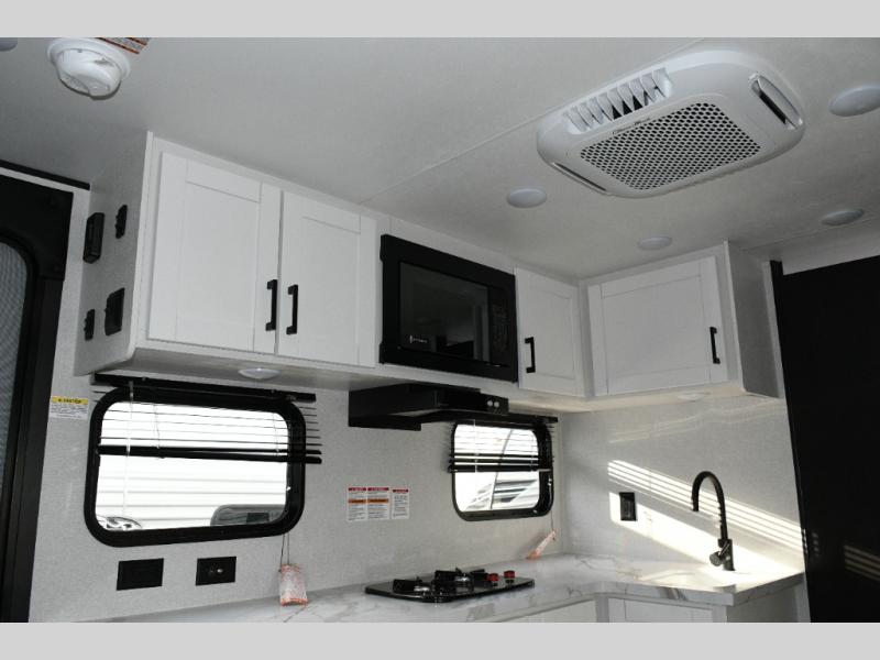 Functional Kitchen – Cooktop, microwave oven, and 8 cu. ft. 12V refrigerator keep your meals simple and fresh.