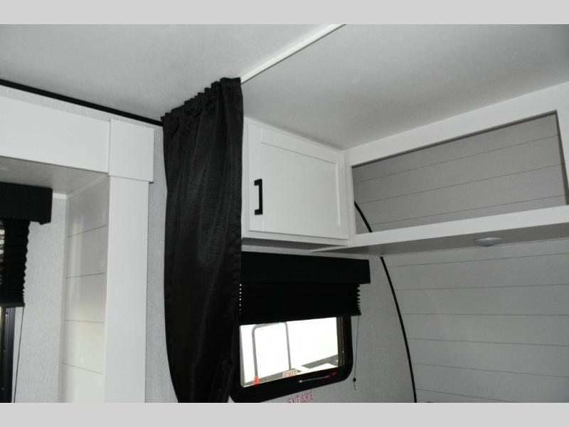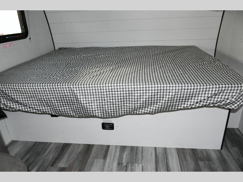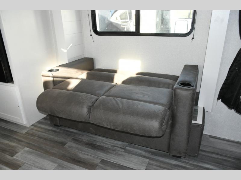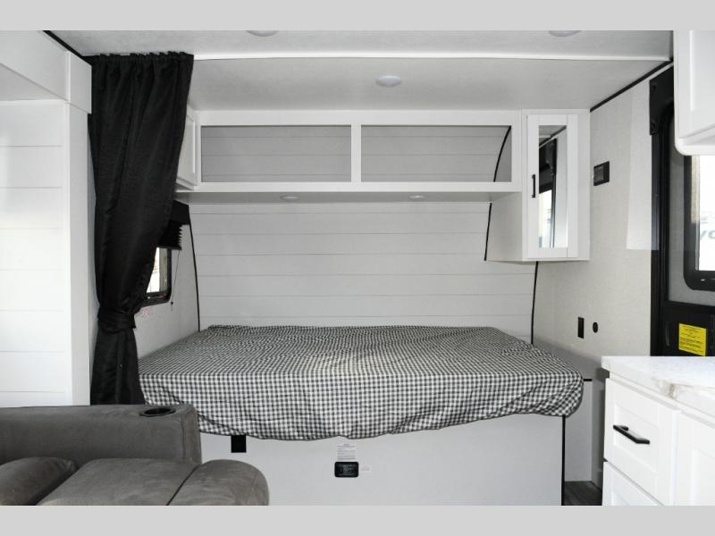Front Queen Bed with Privacy Curtain – Your own cozy retreat with room for guests on the jack-knife sofa.