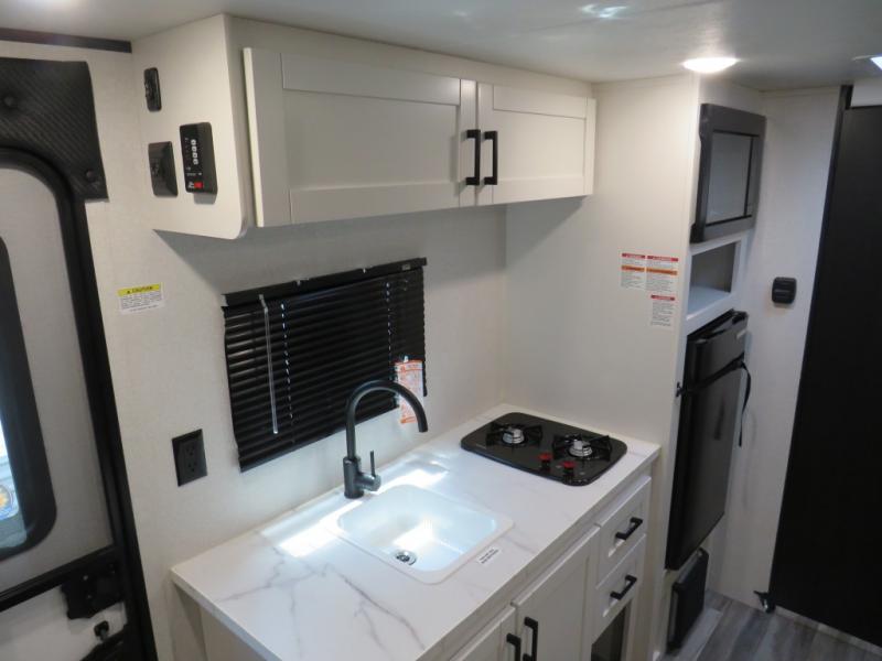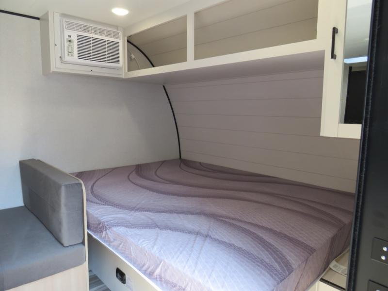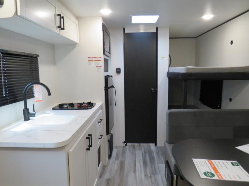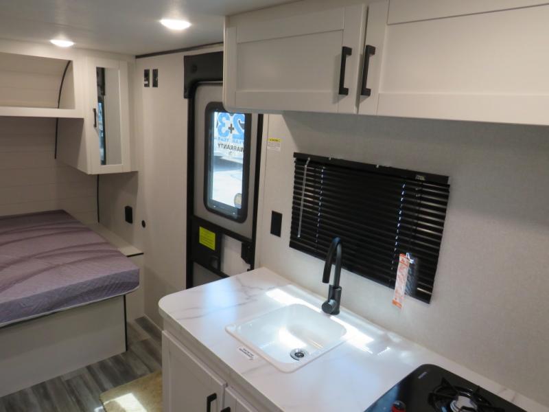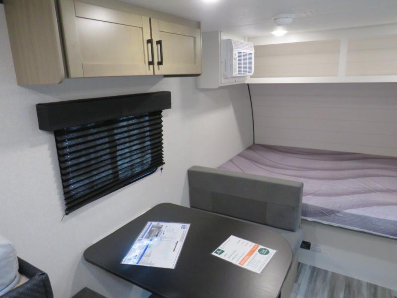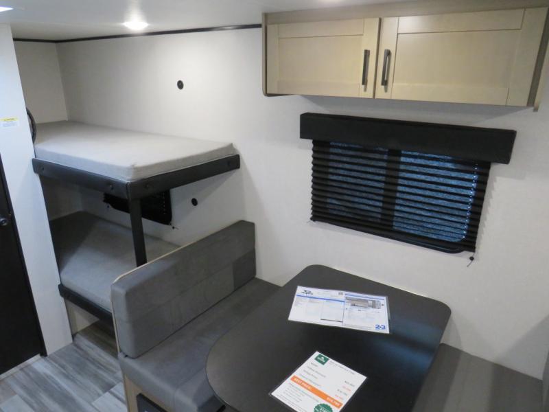 Your crew of five will love camping in this single-axle travel trailer! There are bunk beds in the rear corner and a full bath in the other rear corner for easy nighttime use. You will have the front queen bed to yourselves, along with an overhead shelf and a nightstand/wardrobe for your clothes. The booth dinette provides a place to dine, play games, and even let an extra guest stay over. The Customer Value Package on this Sport Edition model includes a 19K BTU furnace, stabilizer jacks, a power awning, an entry door with a window and shade prep, and many more stand-out features!