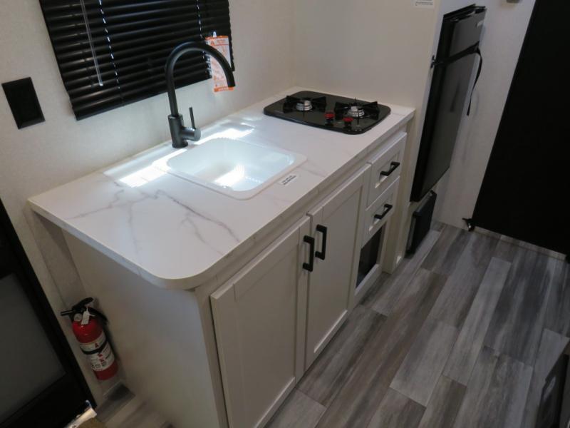 Your crew of five will love camping in this single-axle travel trailer! There are bunk beds in the rear corner and a full bath in the other rear corner for easy nighttime use. You will have the front queen bed to yourselves, along with an overhead shelf and a nightstand/wardrobe for your clothes. The booth dinette provides a place to dine, play games, and even let an extra guest stay over. The Customer Value Package on this Sport Edition model includes a 19K BTU furnace, stabilizer jacks, a power awning, an entry door with a window and shade prep, and many more stand-out features!
