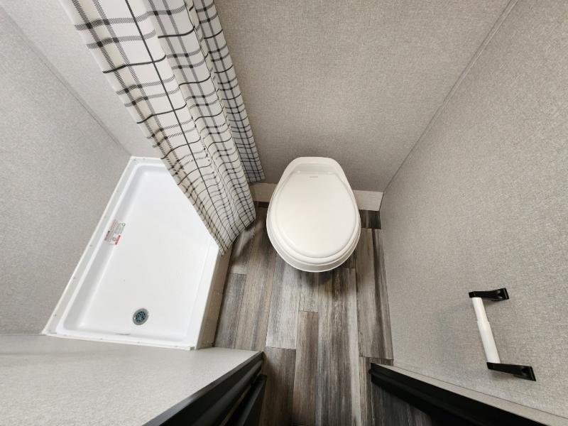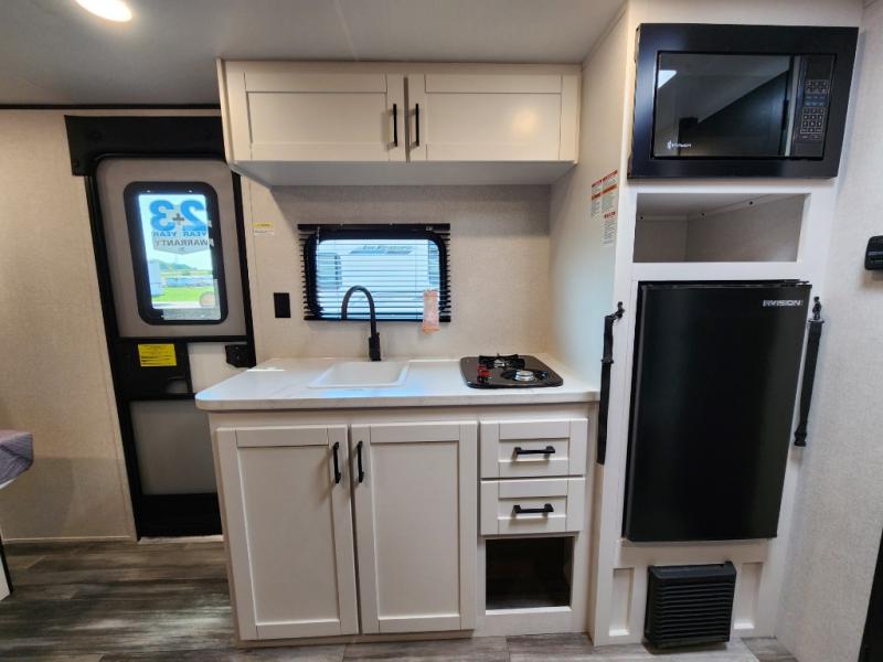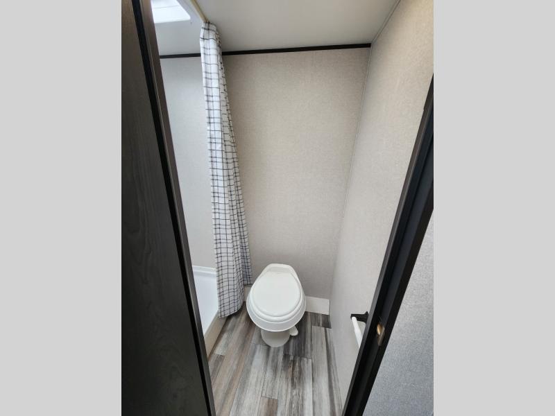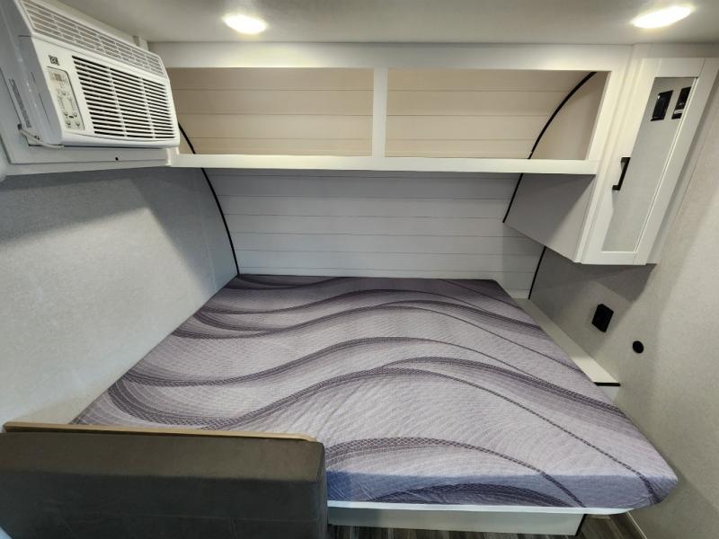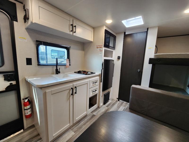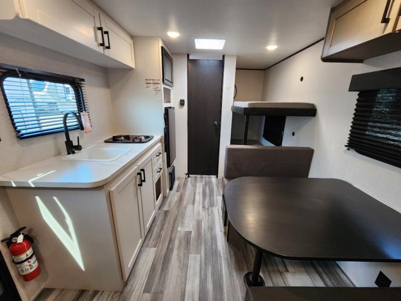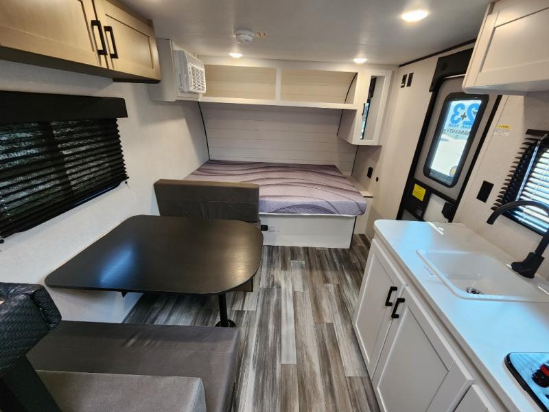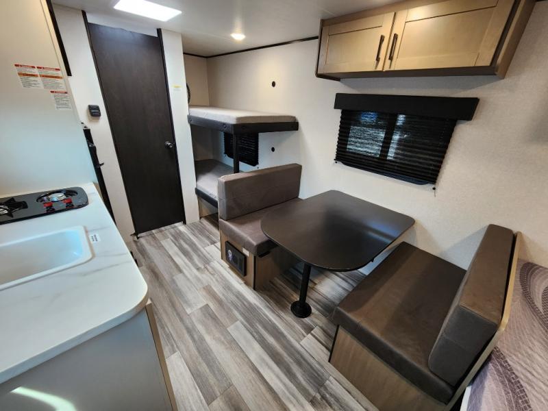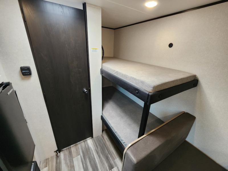 Your crew of five will love camping in this single-axle travel trailer! There are bunk beds in the rear corner and a full bath in the other rear corner for easy nighttime use. You will have the front queen bed to yourselves, along with an overhead shelf and a nightstand/wardrobe for your clothes. The booth dinette provides a place to dine, play games, and even let an extra guest stay over. The Customer Value Package on this Sport Edition model includes a 19K BTU furnace, stabilizer jacks, a power awning, an entry door with a window and shade prep, and many more stand-out features!